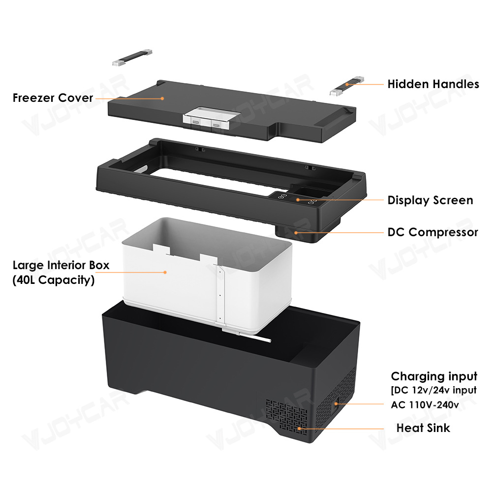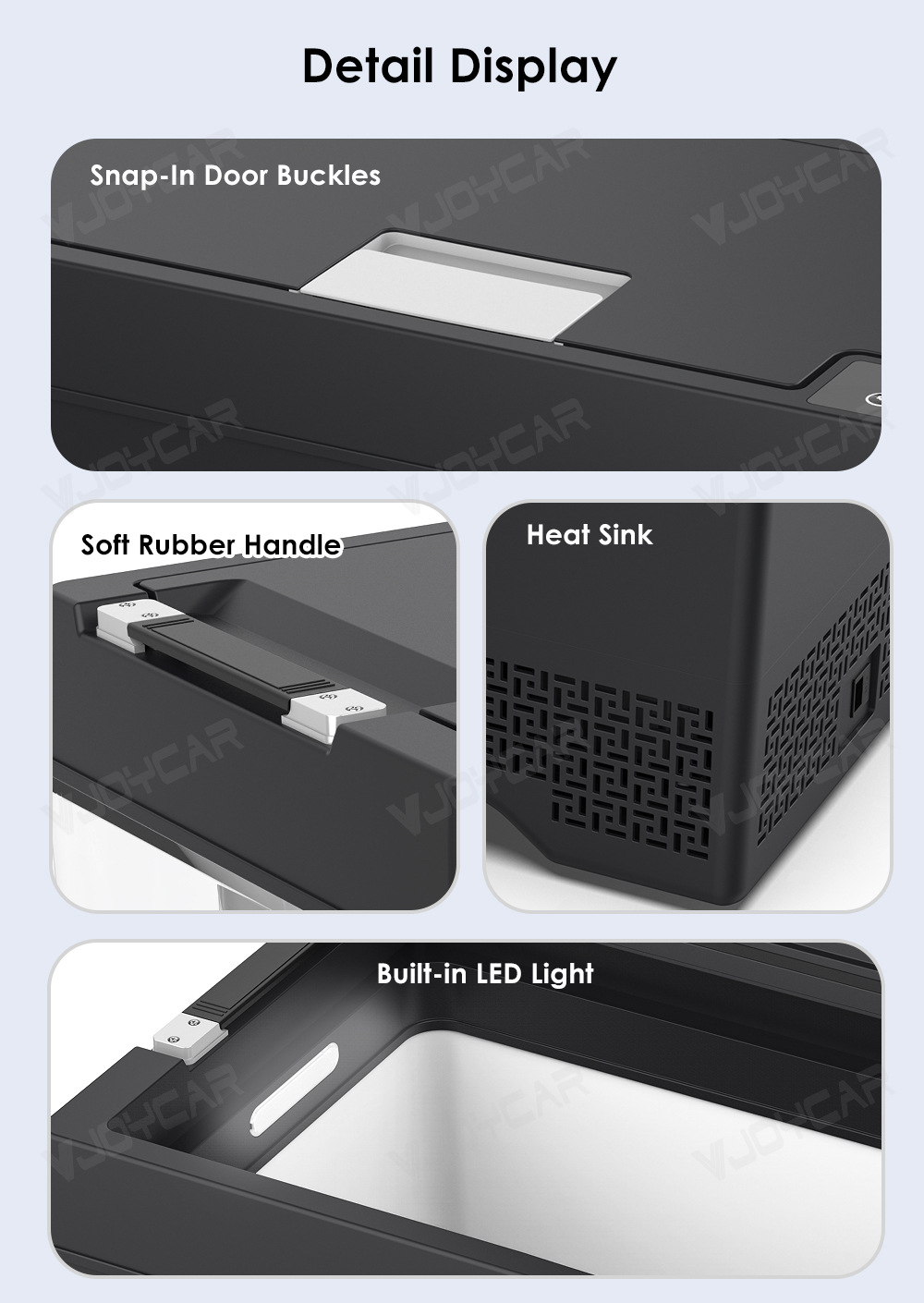 ⑤:高效散热与电源适配:支持 DC 12V/24V 及 AC 110V - 240V 多种电源输入,散热片设计确保高效散热,保障冰箱稳定运行。