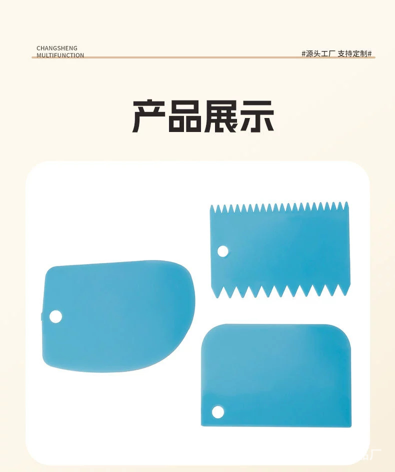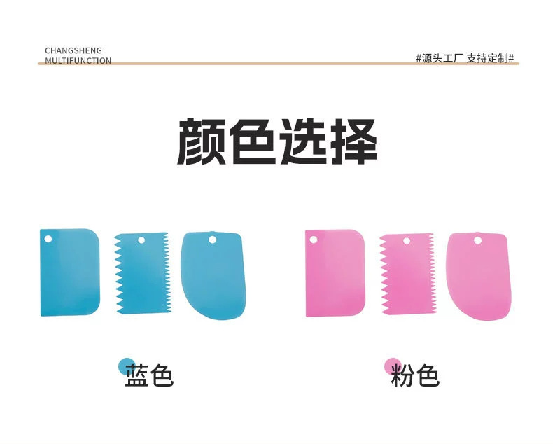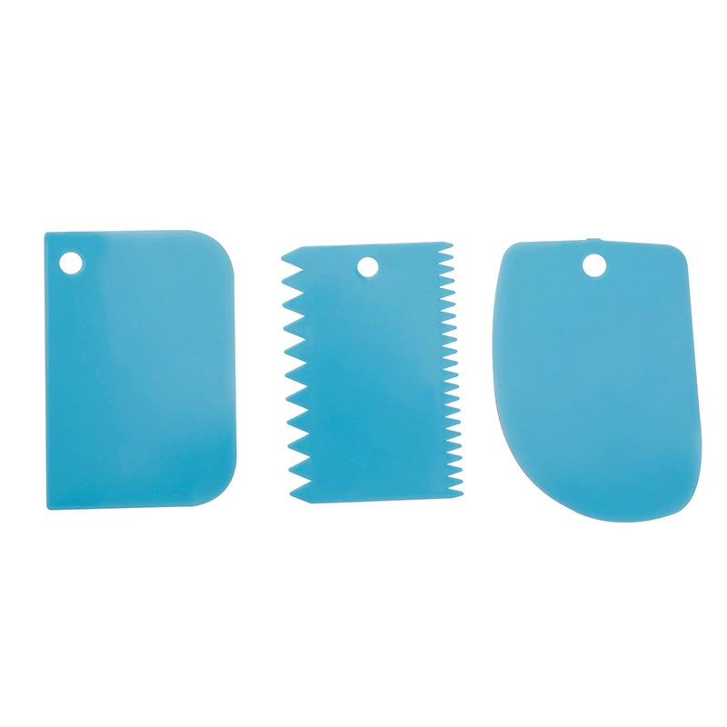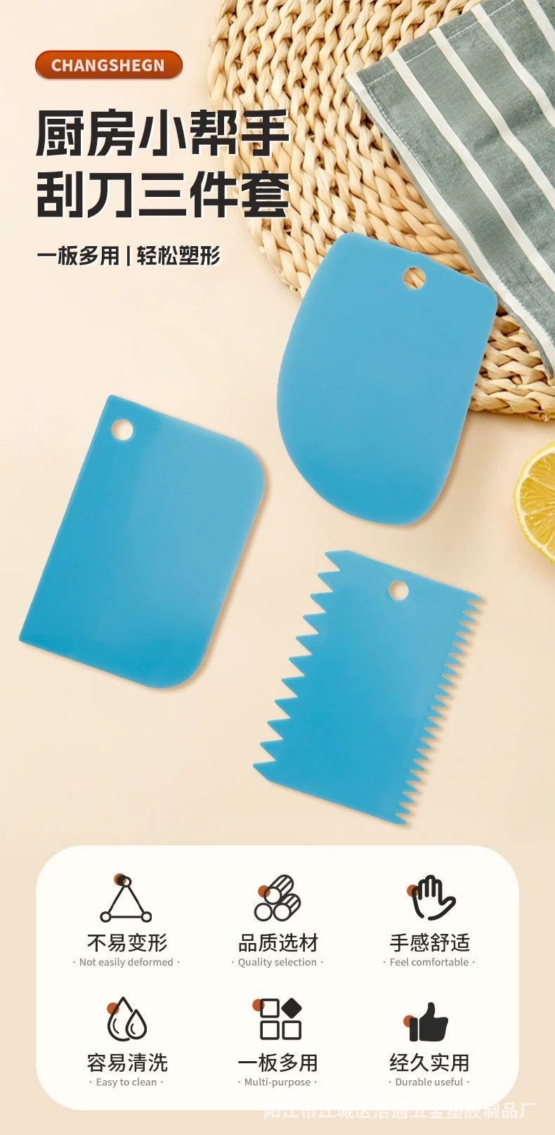 제조 업체 도매 다채로운 플라스틱 크림 간단한 스크레이퍼 3 피스 세트 크림 케이크 플라스틱 커터 베이킹 도구