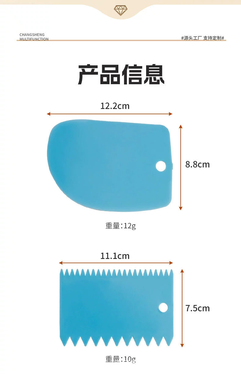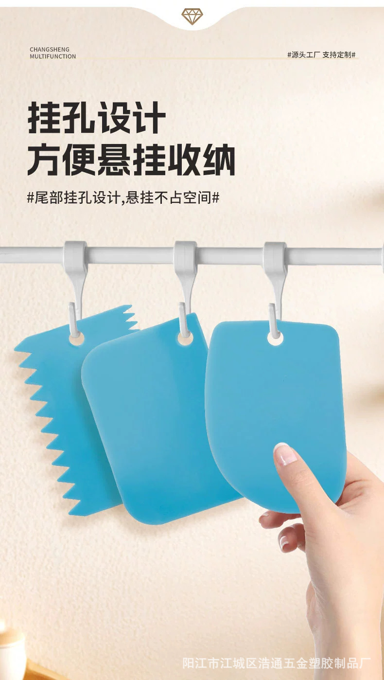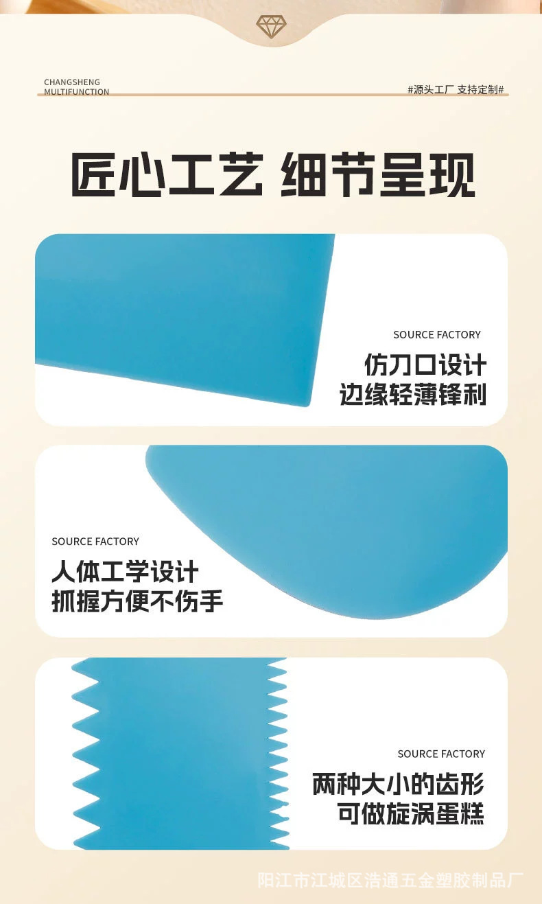 제조 업체 도매 다채로운 플라스틱 크림 간단한 스크레이퍼 3 피스 세트 크림 케이크 플라스틱 커터 베이킹 도구