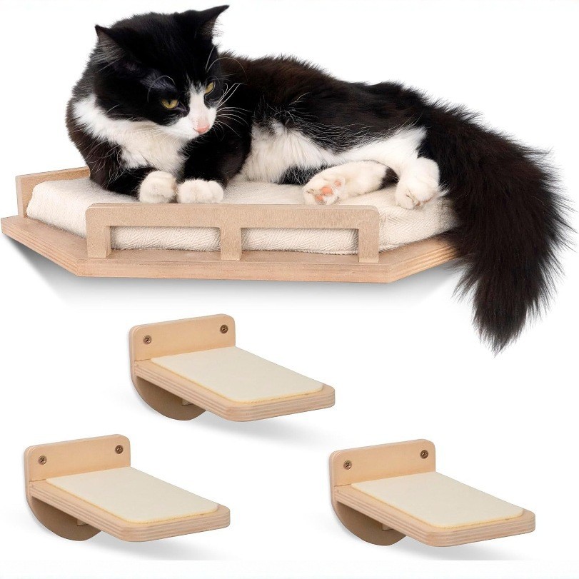 나무 고양이 클라이밍 프레임 코너 고양이 벽 애완 동물 고양이 침대 단단한 나무 벽걸이 형 고양이 침대 홈 발코니 나무 고양이 랙 애완 동물 가구스토어 가기