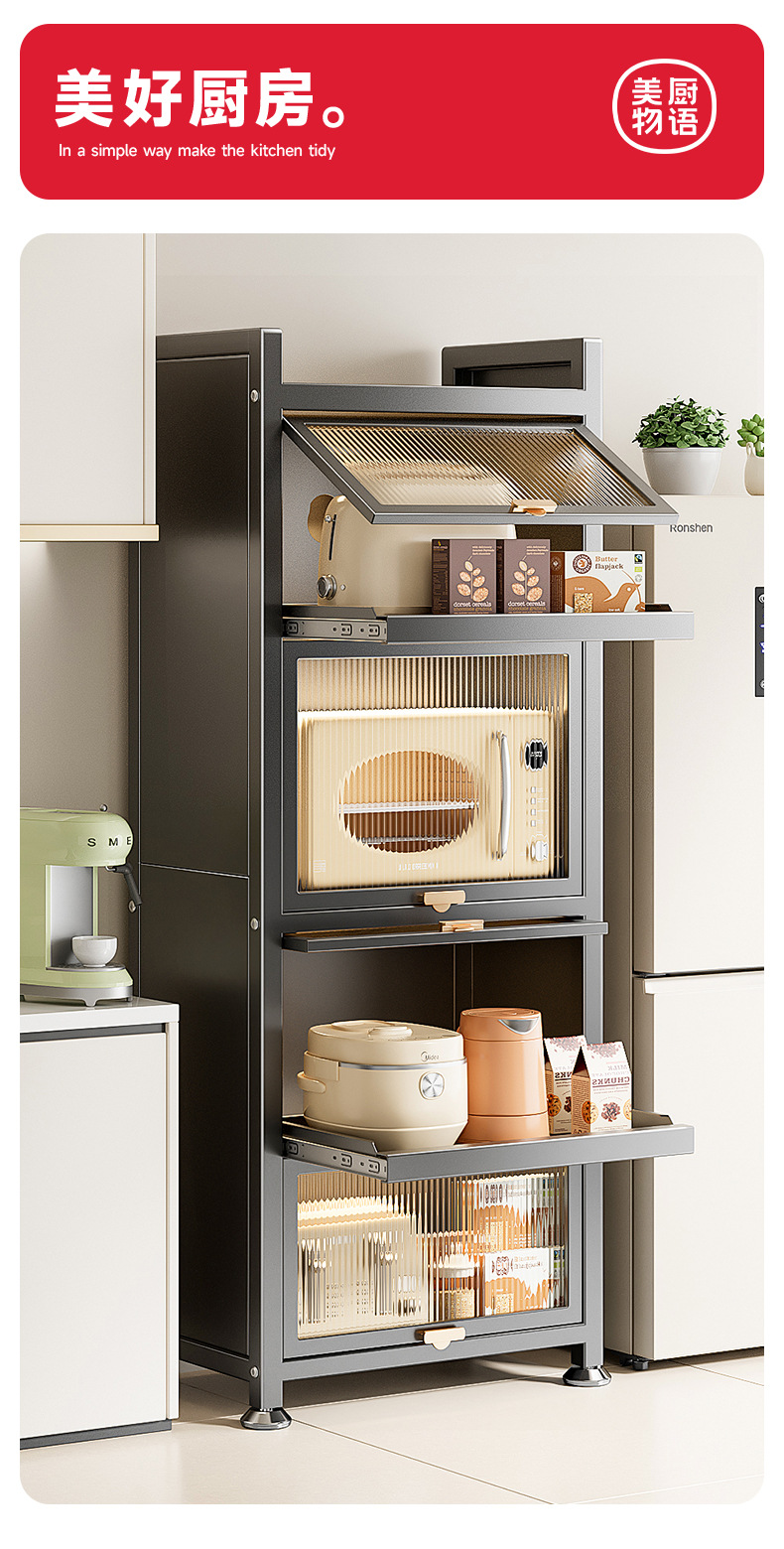 풀아웃 주방 수납 선반, 전자레인지 수납 캐비닛, 바닥에서 천장까지 이어지는 다층 수납 캐비닛, 다기능 캐비닛, 찬장 슬롯