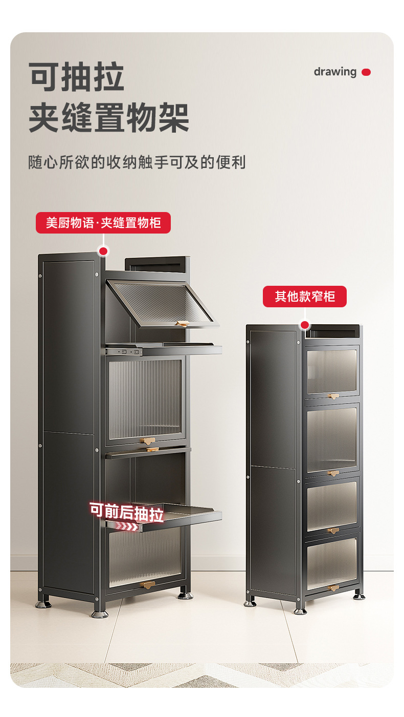 풀아웃 주방 수납 선반, 전자레인지 수납 캐비닛, 바닥에서 천장까지 이어지는 다층 수납 캐비닛, 다기능 캐비닛, 찬장 슬롯스토어 가기