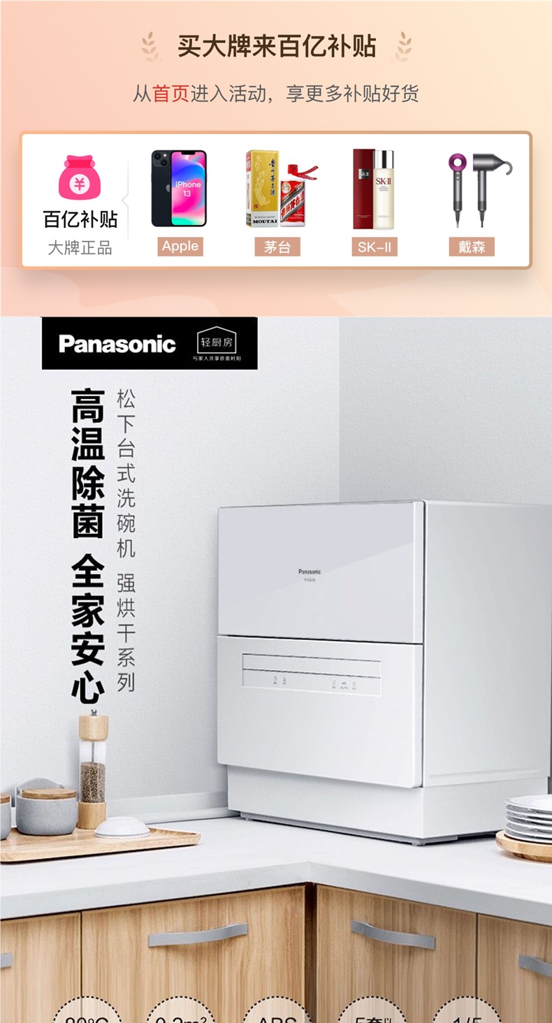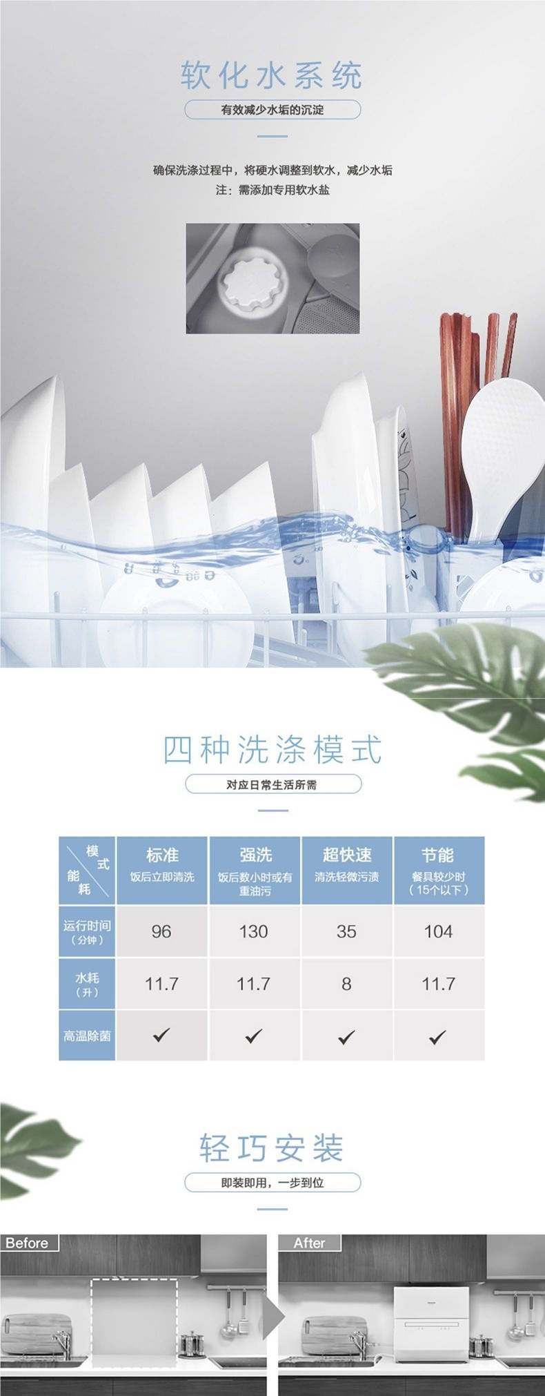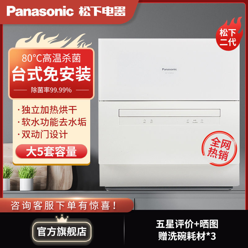 파나소닉 식기세척기 가정용 조리대 독립형 완전 자동 데스크탑 소형 식기세척기 설치 불필요 NP-TH1WECN스토어 가기