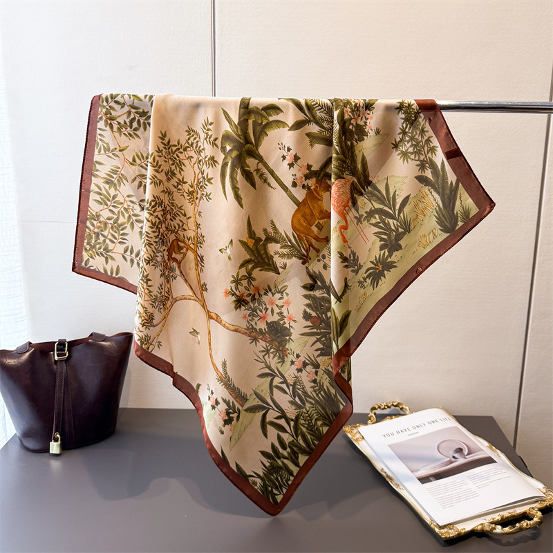정글 비밀 언어 인쇄 실크 스카프 광장 스카프 고급 목도리 모든 경기 목 작은 광장 스카프 여성 스카프