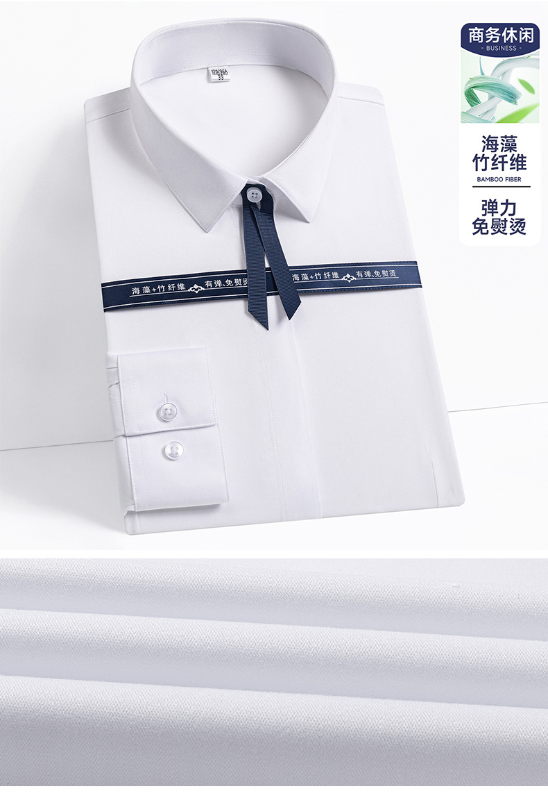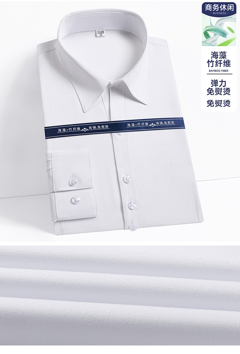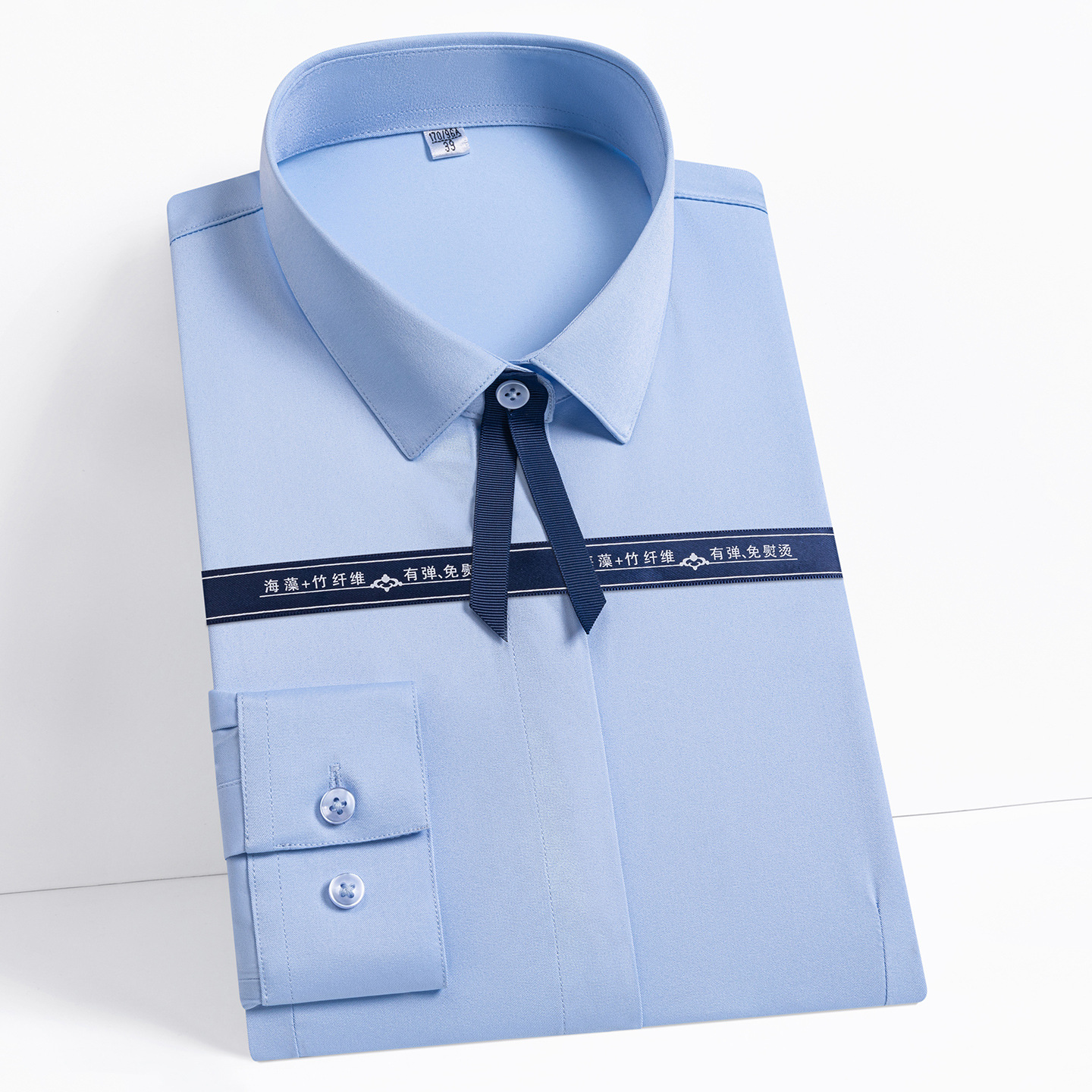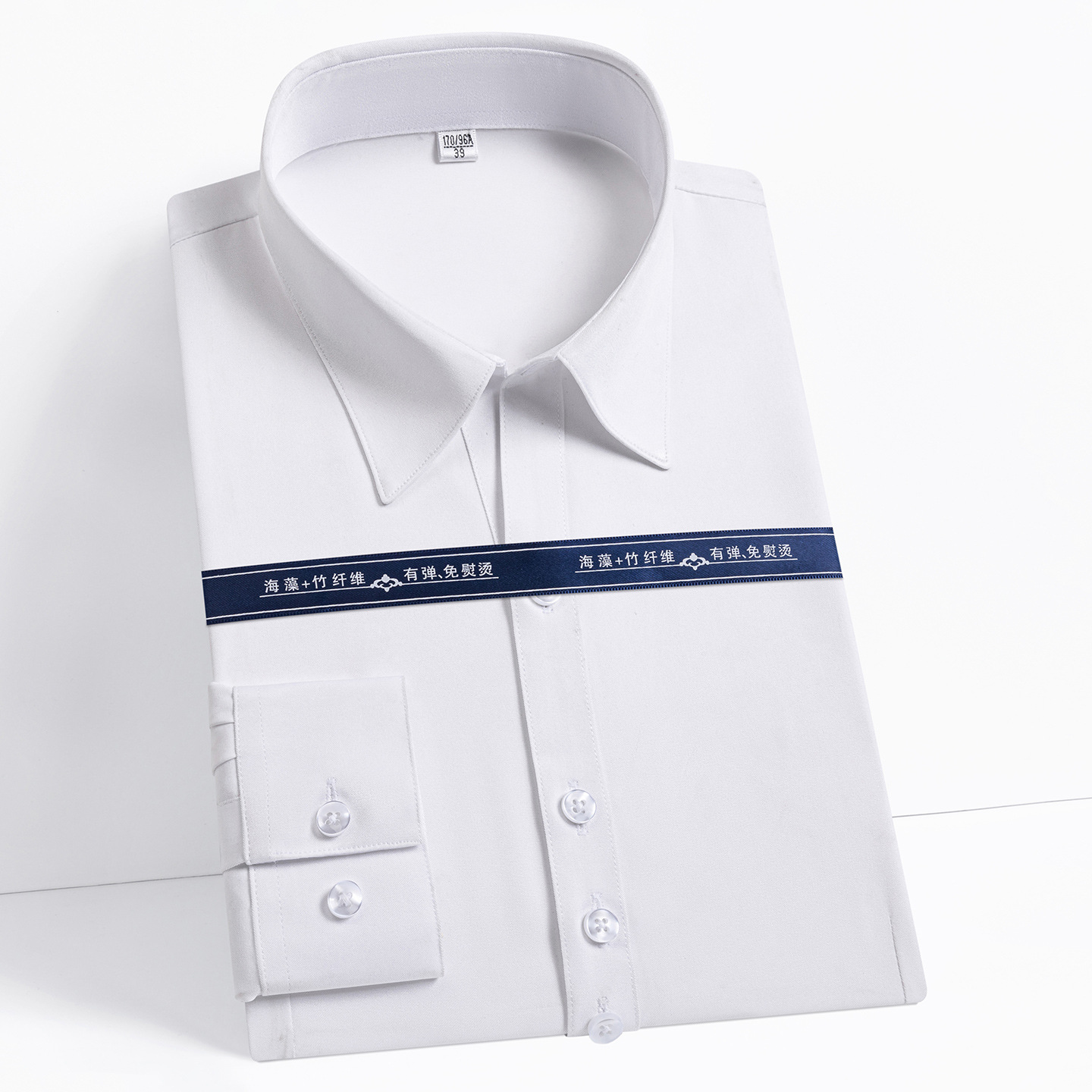 남성용 및 여성용 긴팔 흰색 셔츠 해초 대나무 섬유 탄성 인치 의류 주름 방지 전문 작업복 비철 긴팔 셔츠스토어 가기