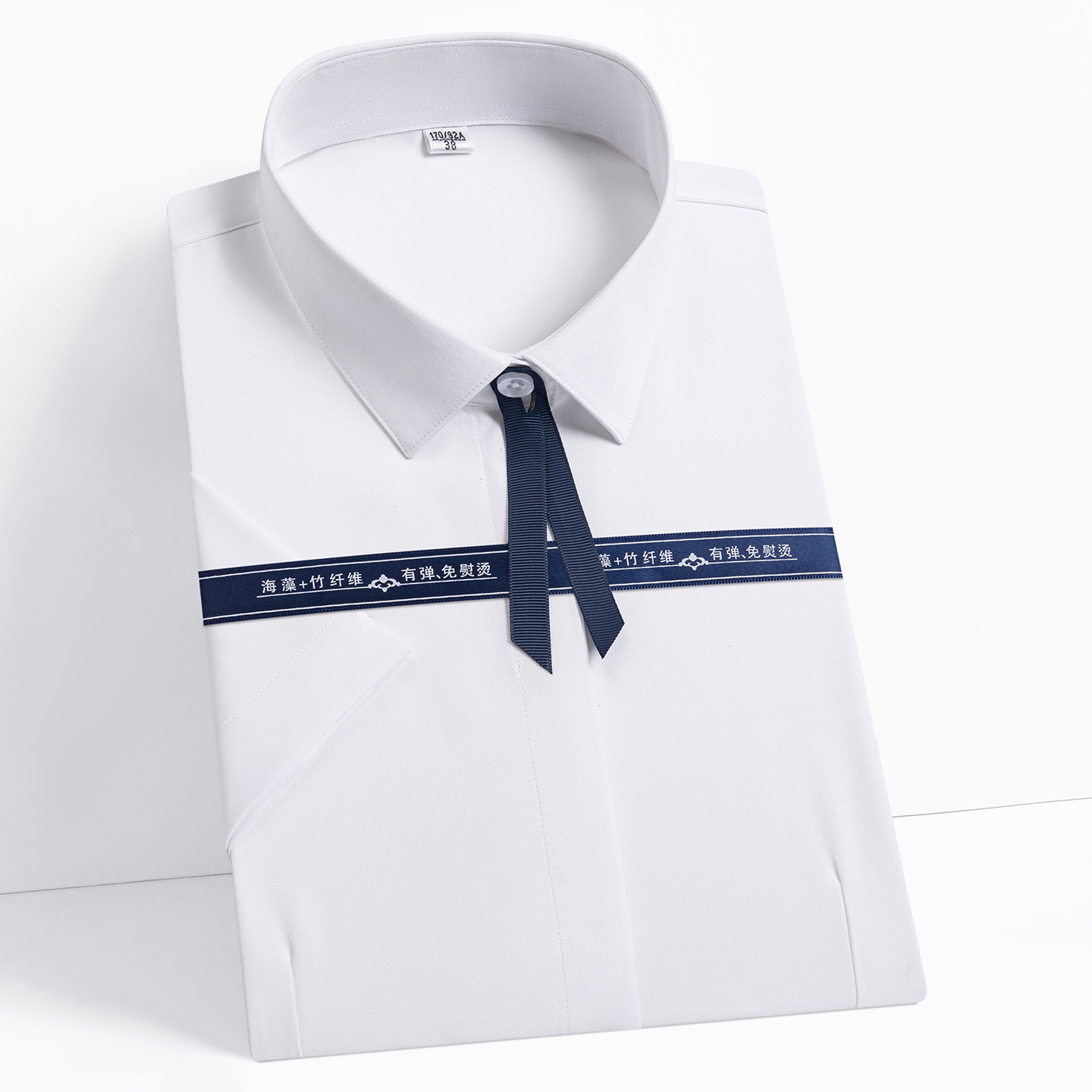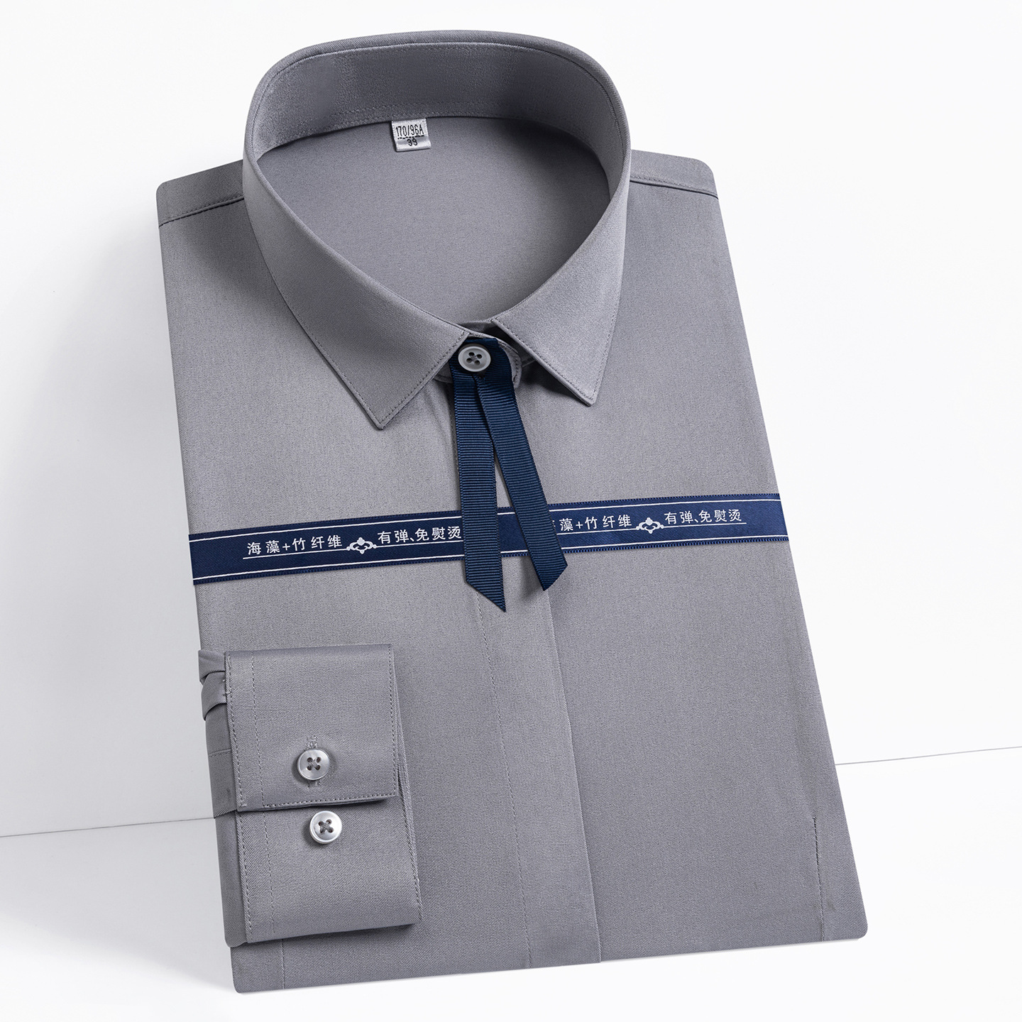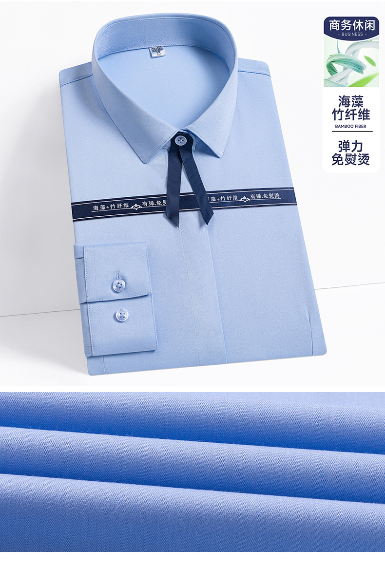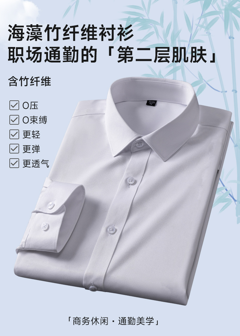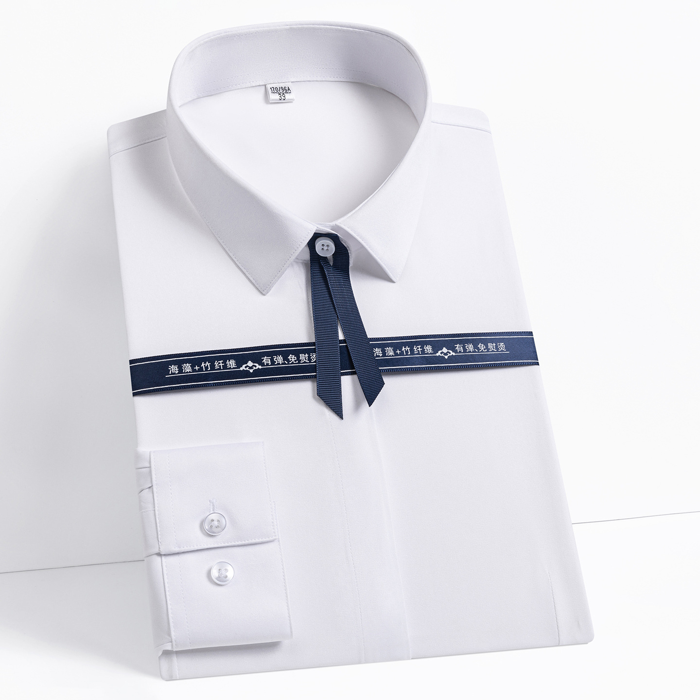 남성용 및 여성용 긴팔 흰색 셔츠 해초 대나무 섬유 탄성 인치 의류 주름 방지 전문 작업복 비철 긴팔 셔츠스토어 가기