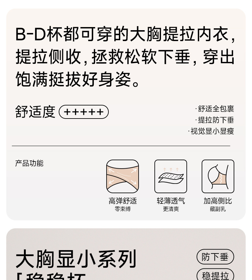 大胸显小内衣女全罩杯薄款防下垂收副乳2025无痕胖mm塑形文胸罩夏