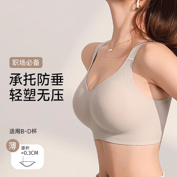 신제품 여성용 큰 가슴과 작은 속옷, 풀 컵 브이넥 얇은 처짐 방지, 가슴 수축, 무봉제 지방 mm 쉐이핑 브라스토어 가기