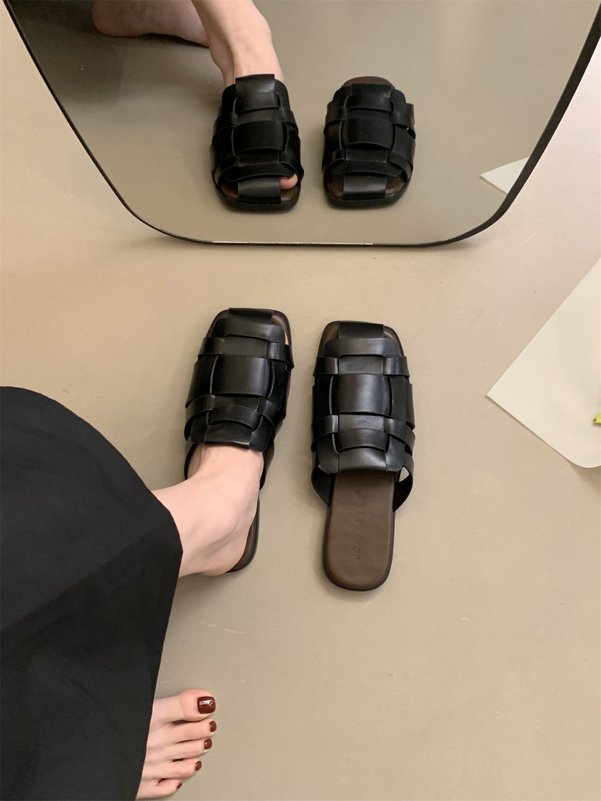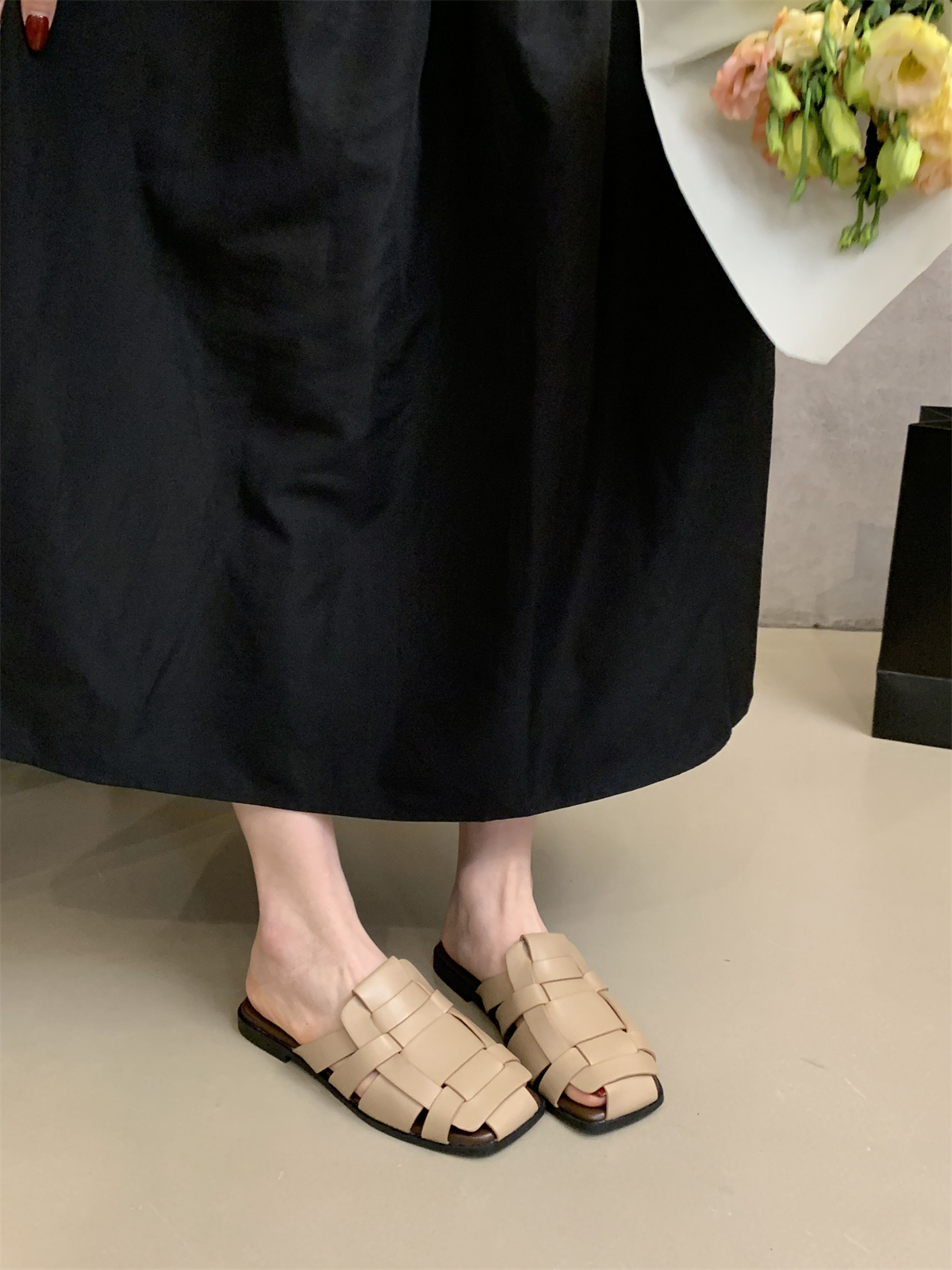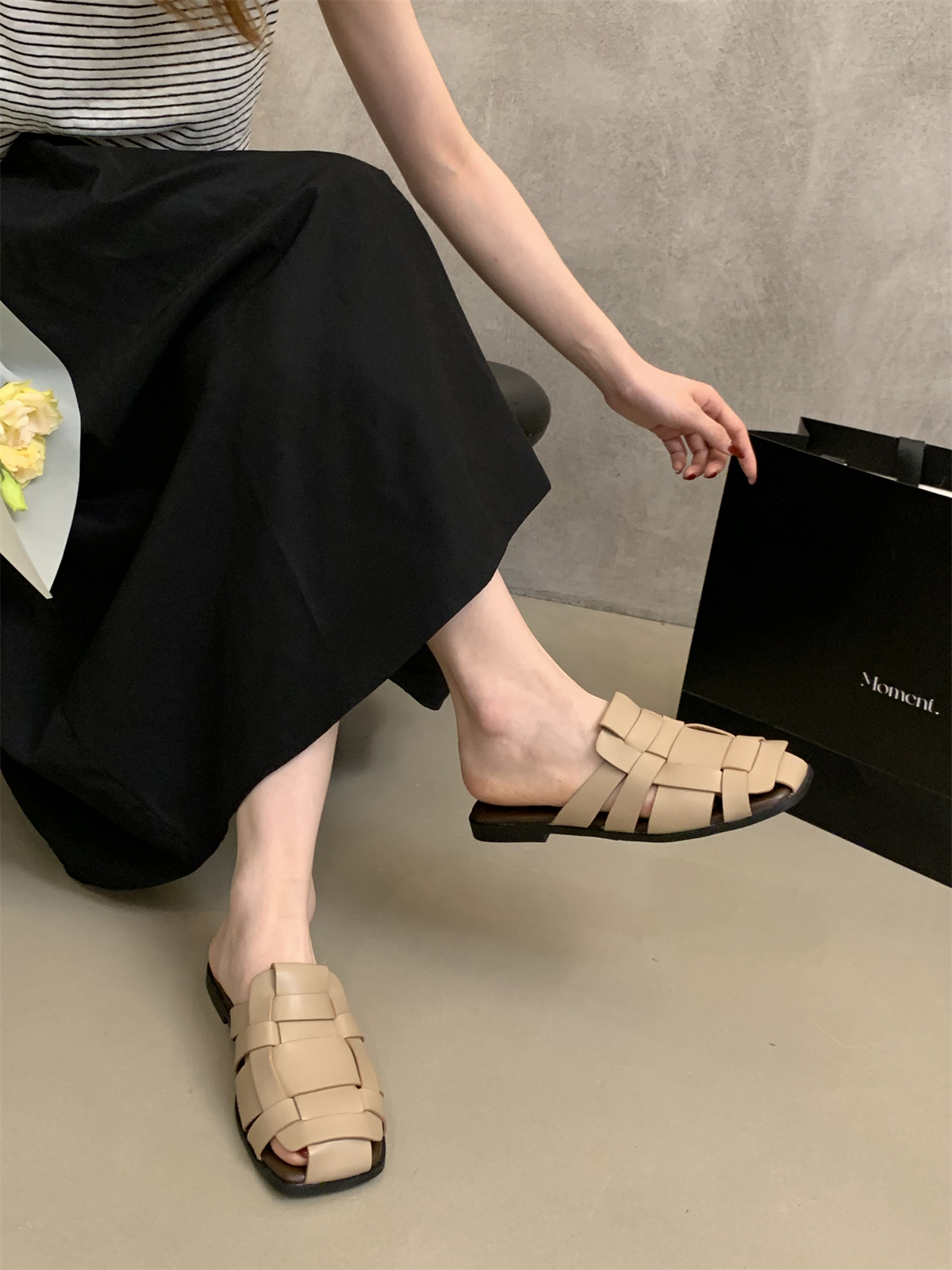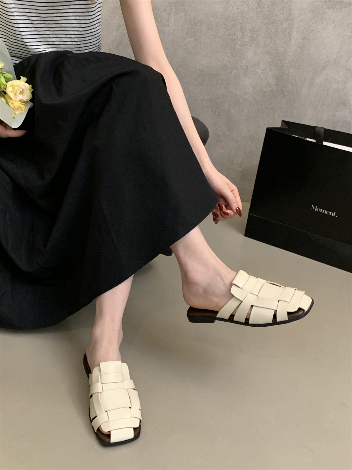 Baotou 하프 슬리퍼 여성 2025 년 여름 새로운 로마 짠 샌들 게으른 뮬러 샌들 플랫 홀리데이 비치 슈즈스토어 가기