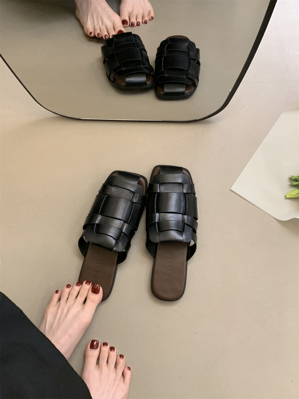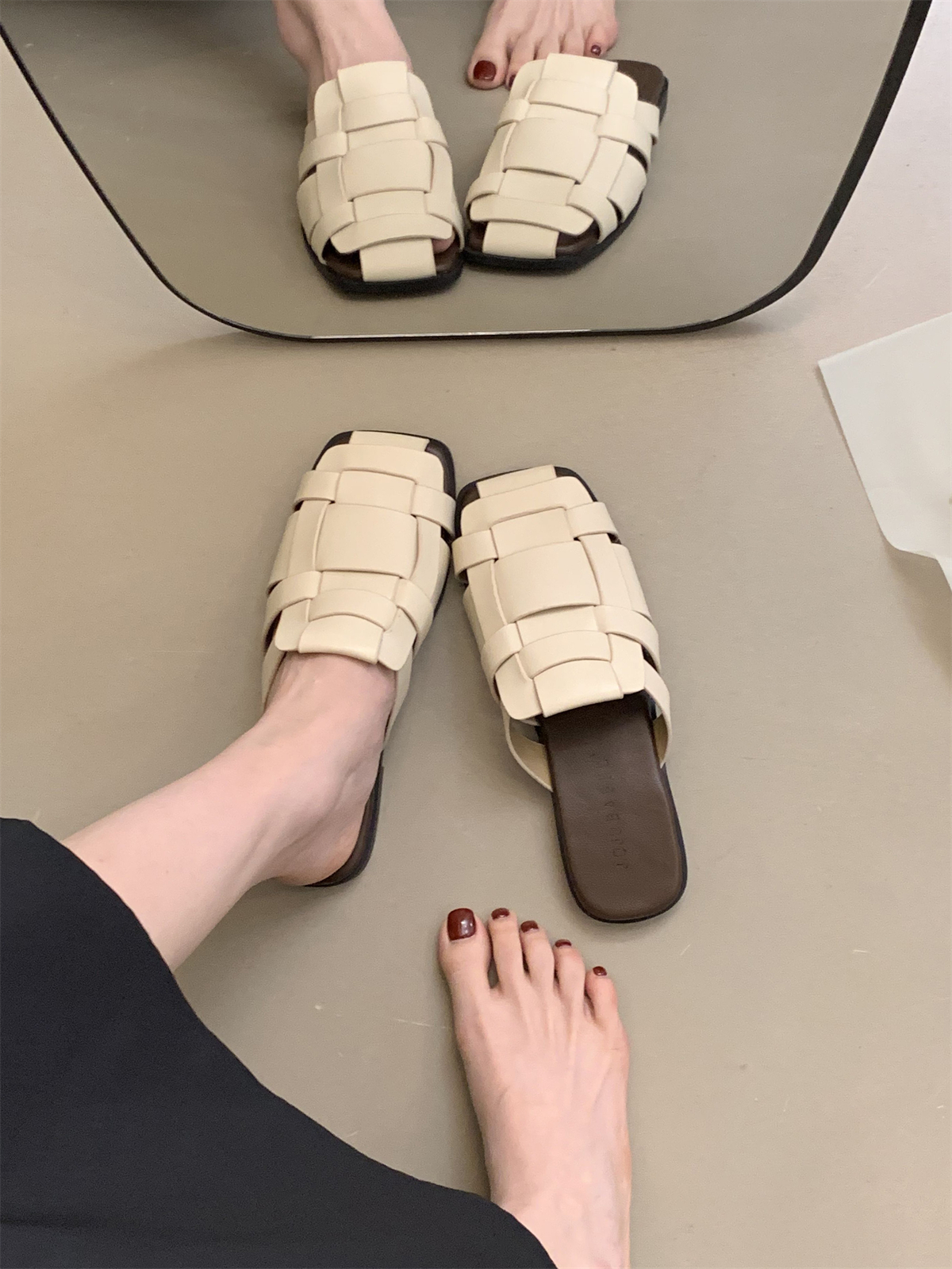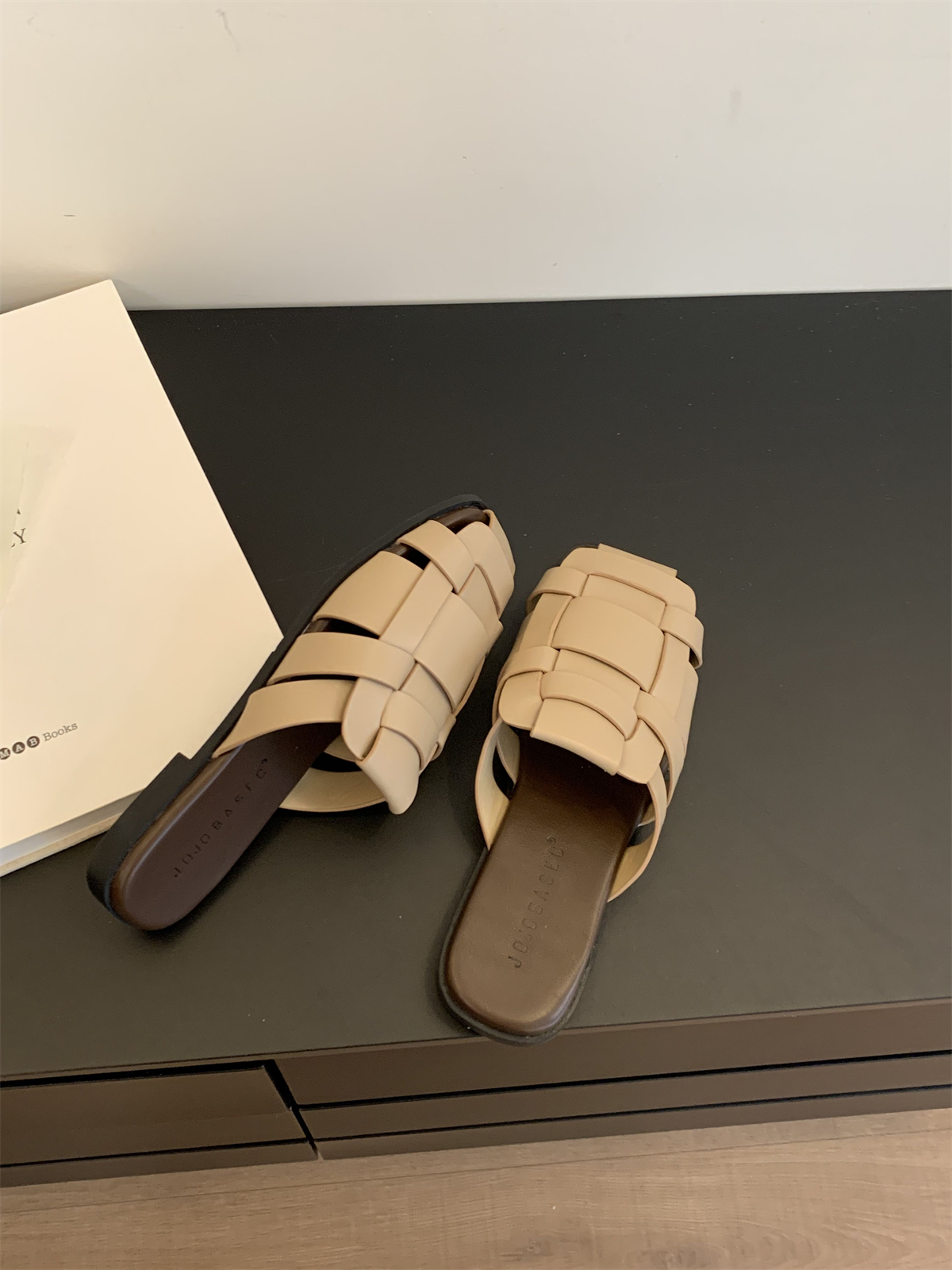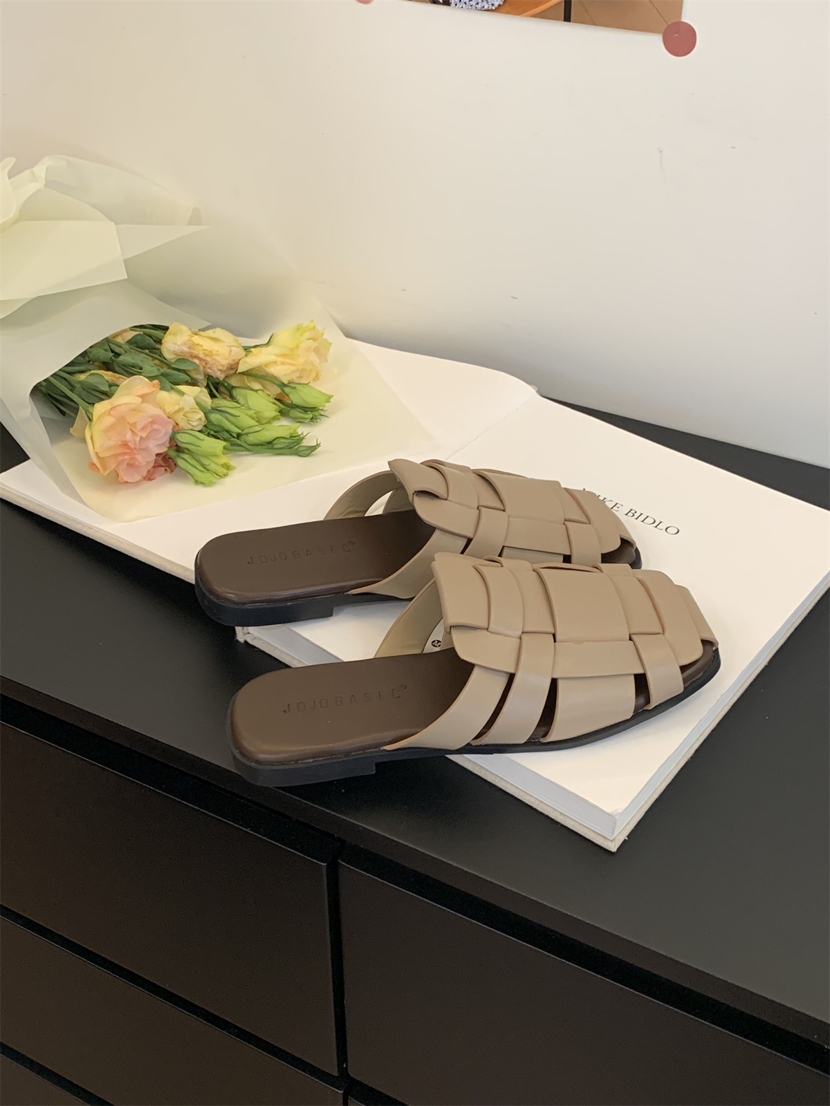 Baotou 하프 슬리퍼 여성 2025 년 여름 새로운 로마 짠 샌들 게으른 뮬러 샌들 플랫 홀리데이 비치 슈즈스토어 가기