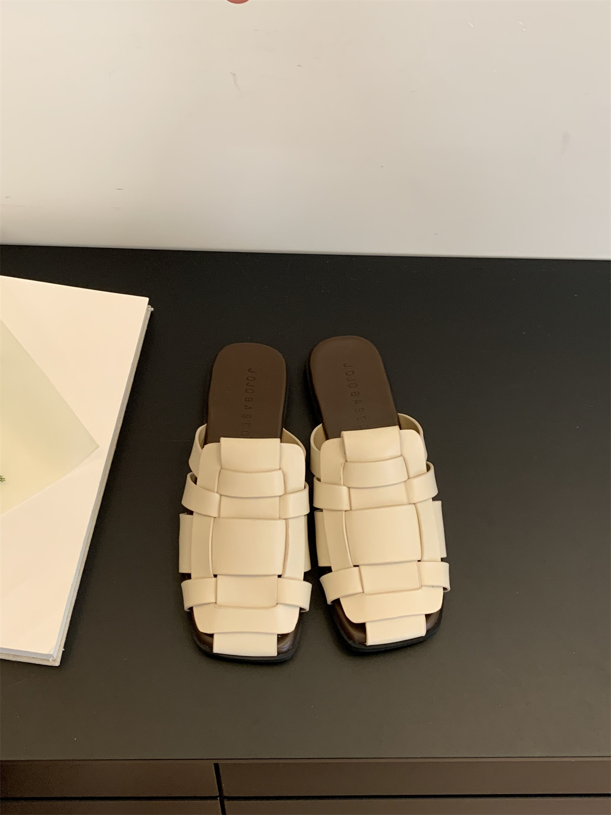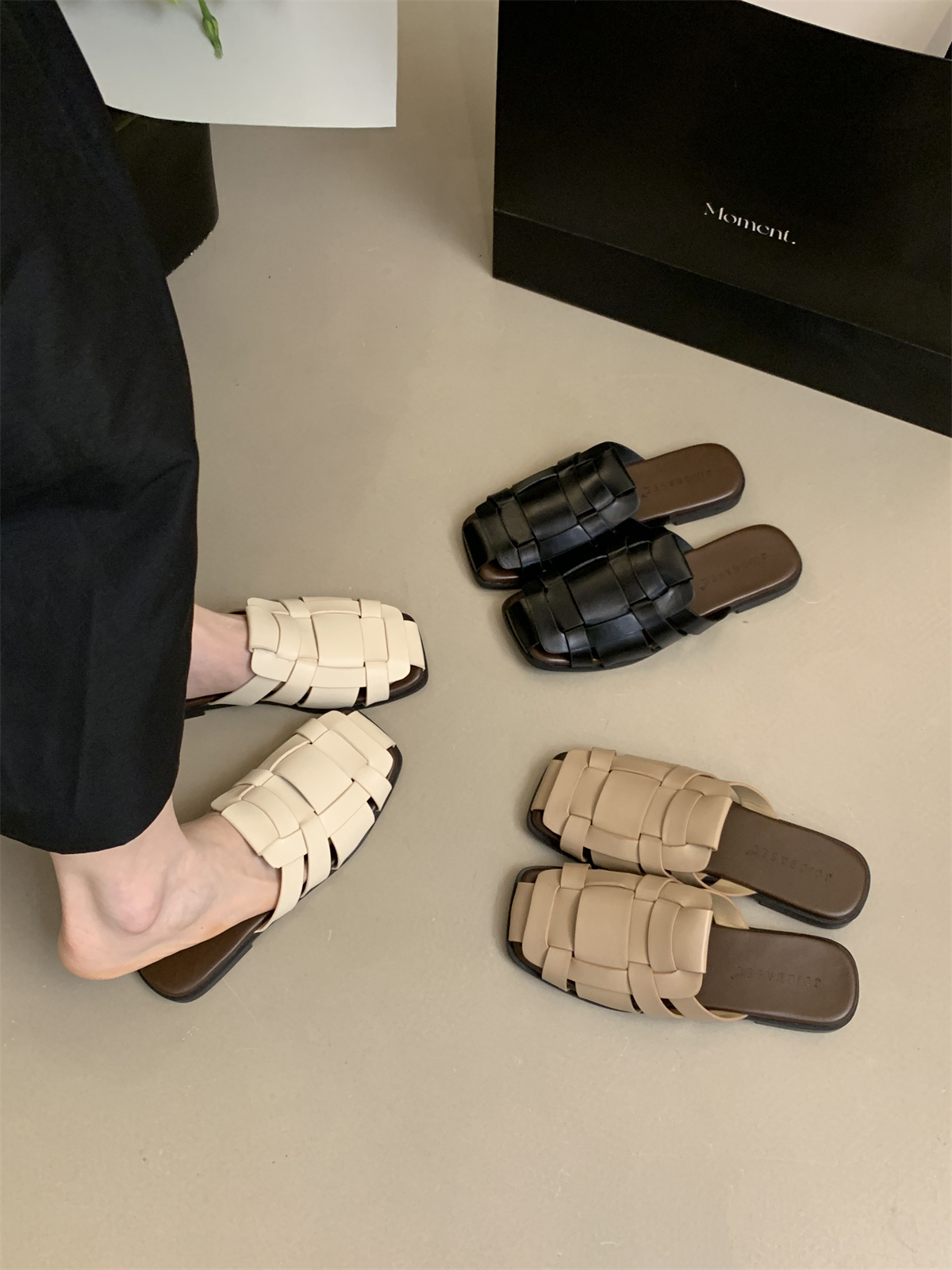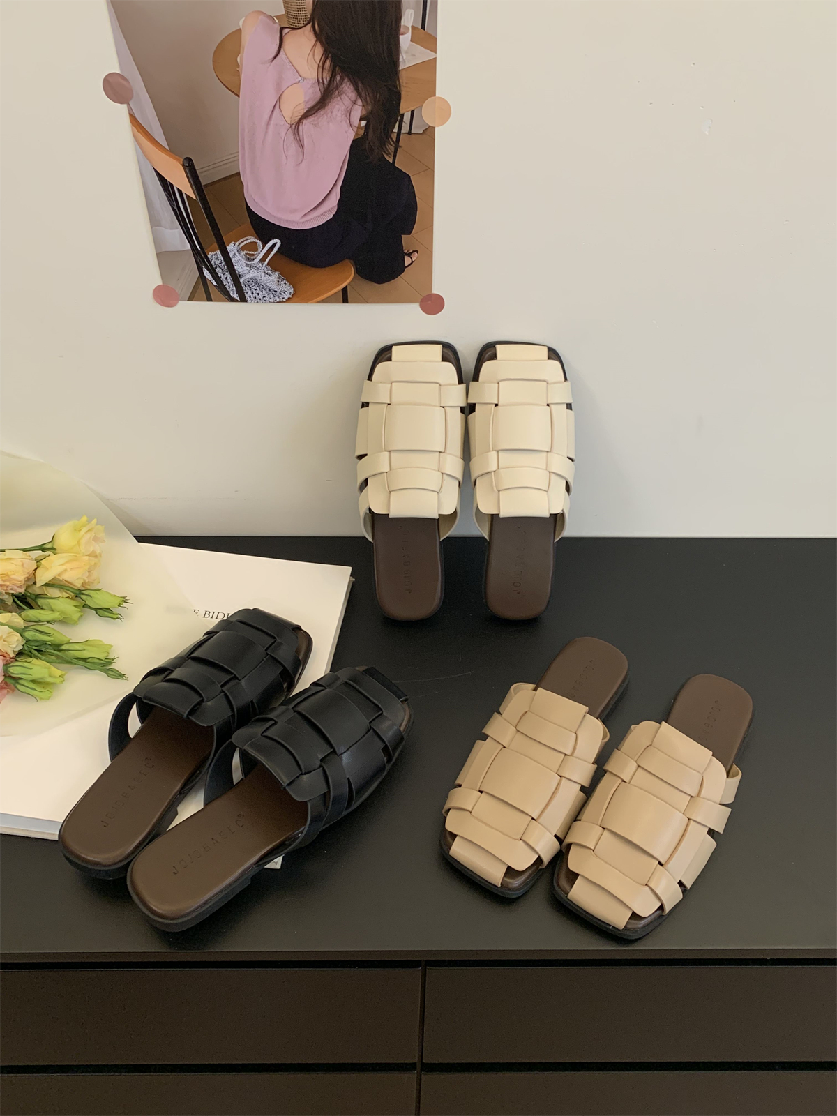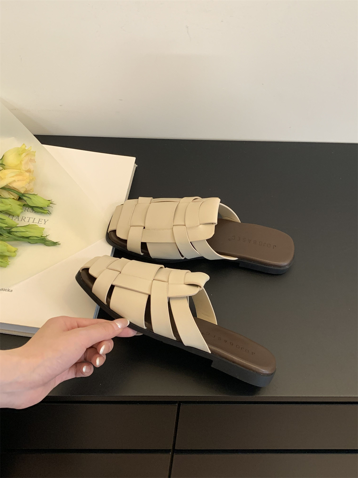 Baotou 하프 슬리퍼 여성 2025 년 여름 새로운 로마 짠 샌들 게으른 뮬러 샌들 플랫 홀리데이 비치 슈즈스토어 가기