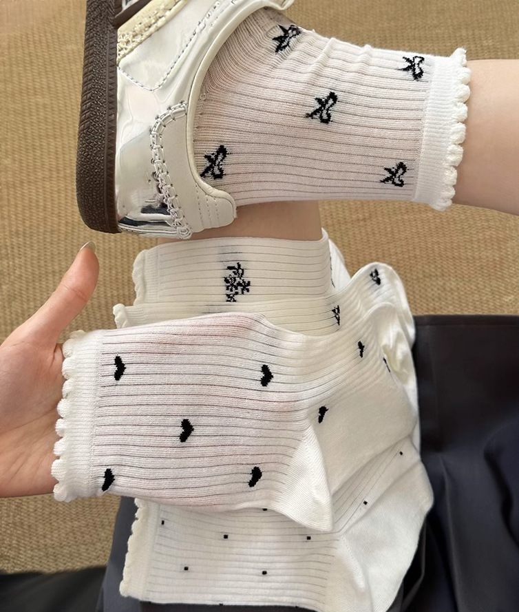 흰색 폴카 도트 보우 양말 여성용 종아리 중간 양말 트렌디 순면 여름 얇은 일본식 jk 레이스 양말스토어 가기