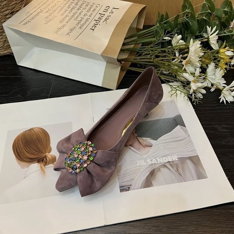 여성을위한 봄과 가을 보우 라인 석 하이힐 2025 새로운 미니멀리스트 스타일 솔리드 컬러 부드러운 가죽 통근 여성 펌프스토어 가기