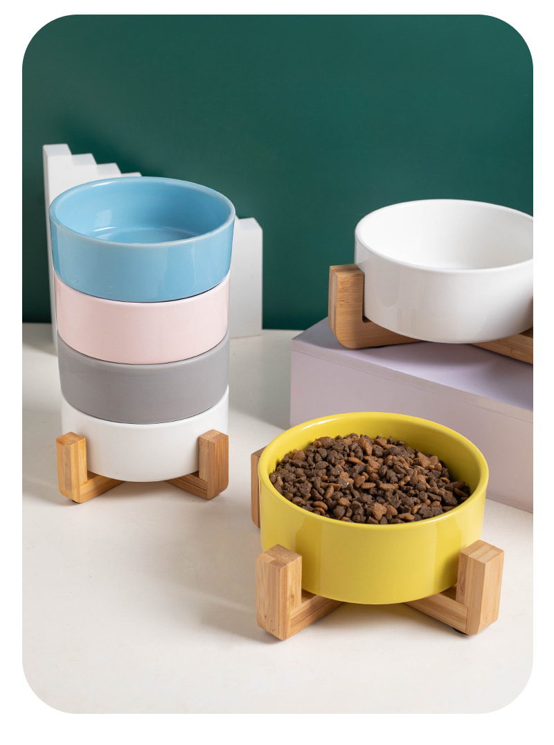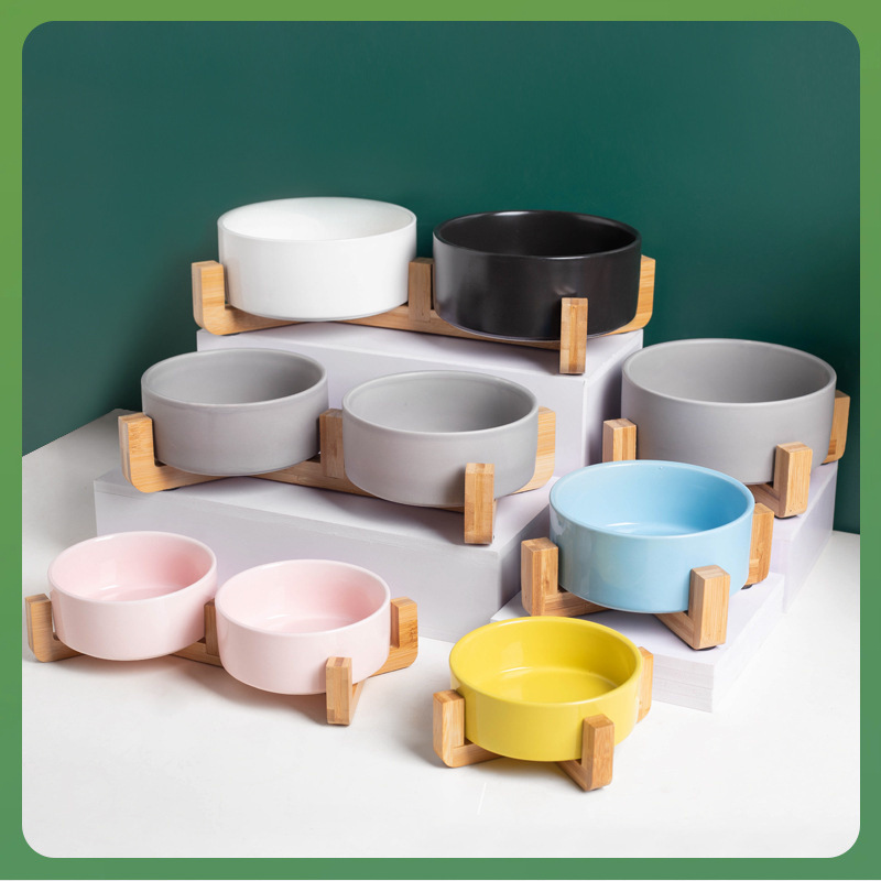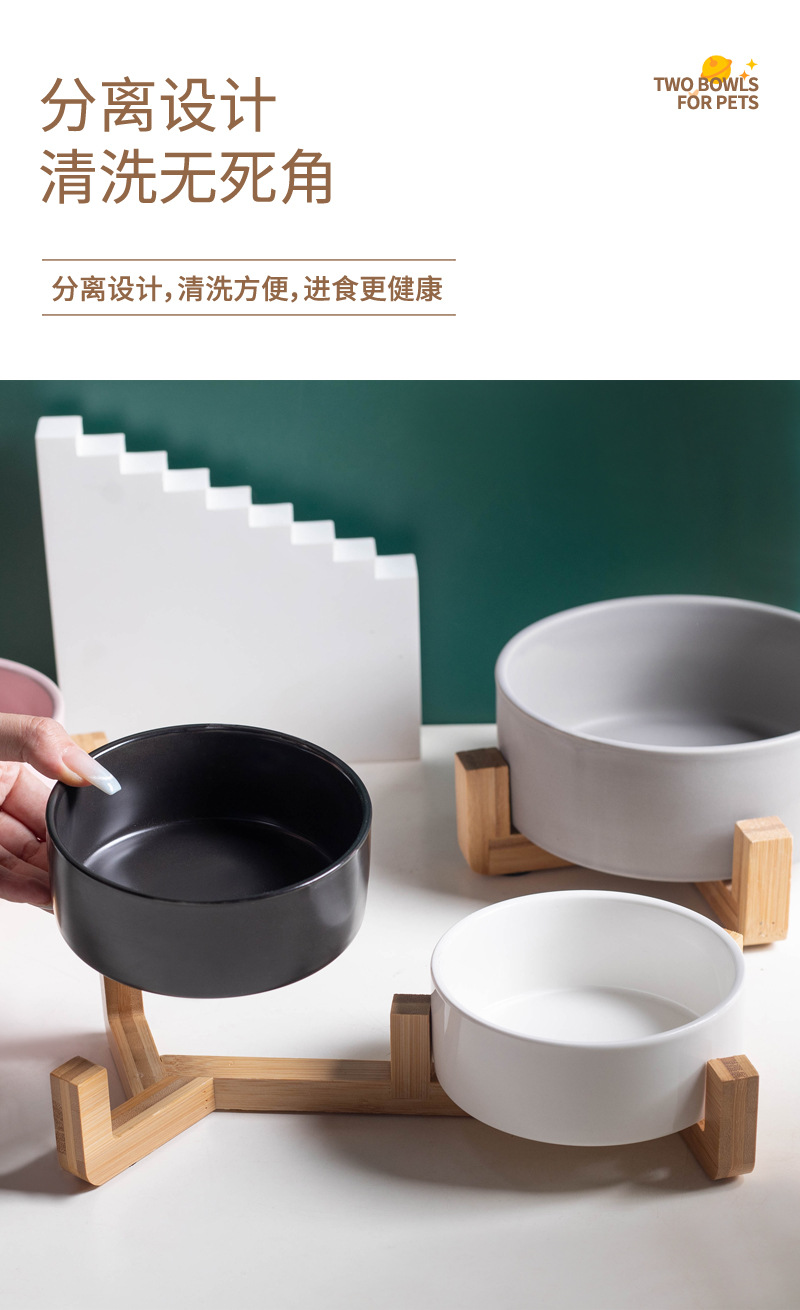 미끄럼 방지 ✅ 그릇이 뒤집어졌습니다. 개 그릇 물 그릇 검정색 마시는 물통 일체형 이중 그릇 고양이 그릇 세라믹 고양이 나무 선반 애완 동물 W18