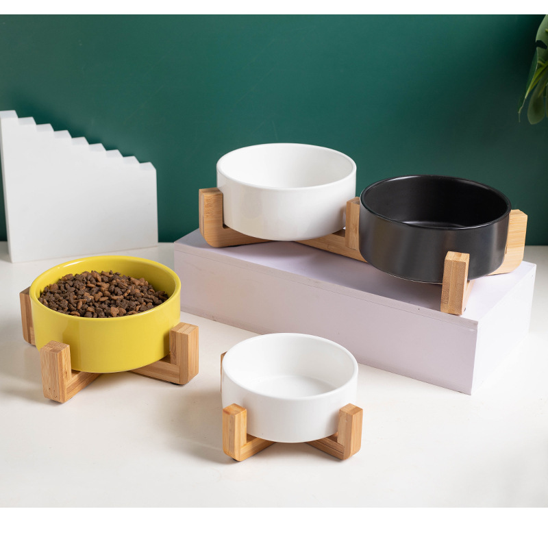 미끄럼 방지 ✅ 그릇이 뒤집어졌습니다. 개 그릇 물 그릇 검정색 마시는 물통 일체형 이중 그릇 고양이 그릇 세라믹 고양이 나무 선반 애완 동물 W18스토어 가기