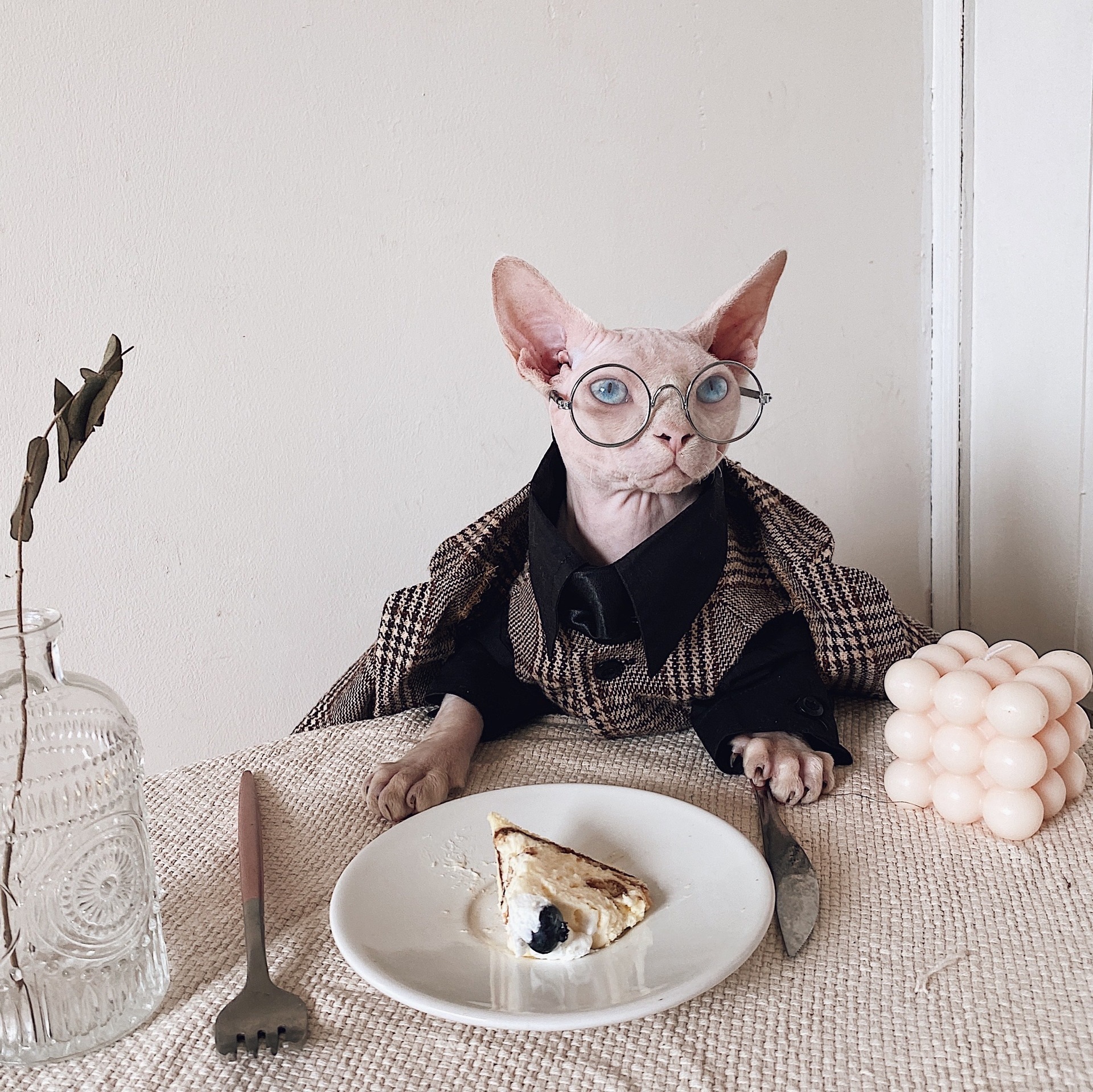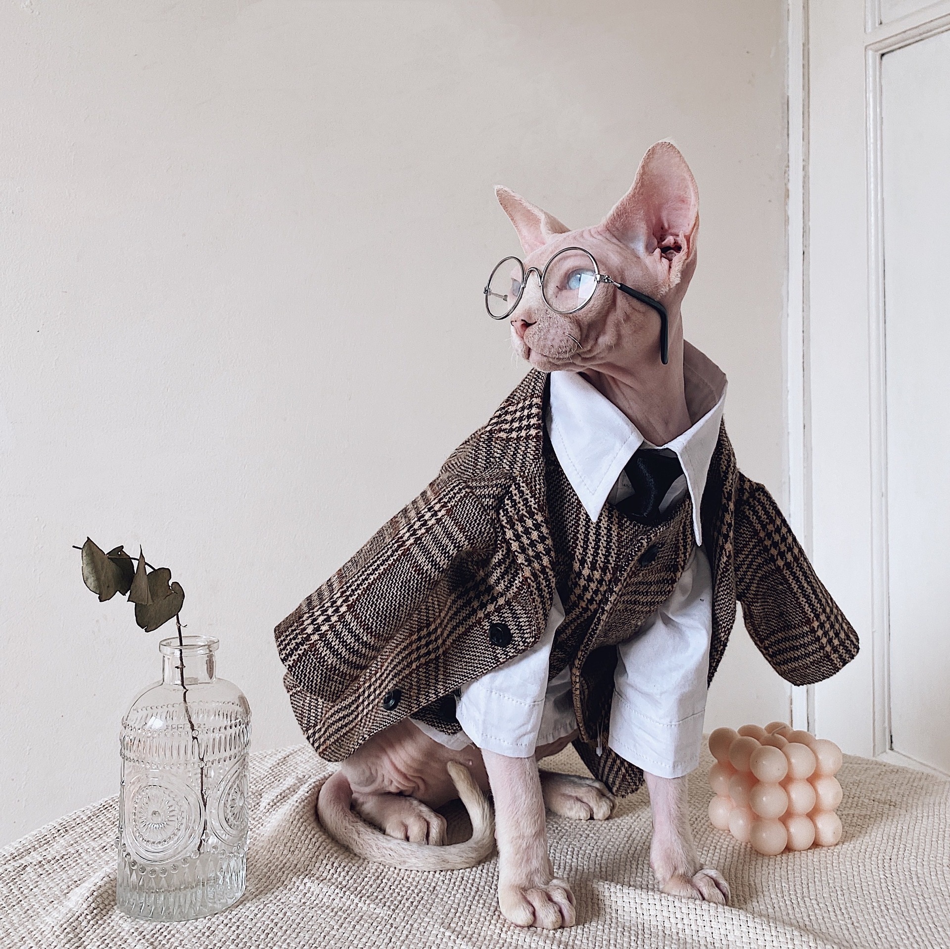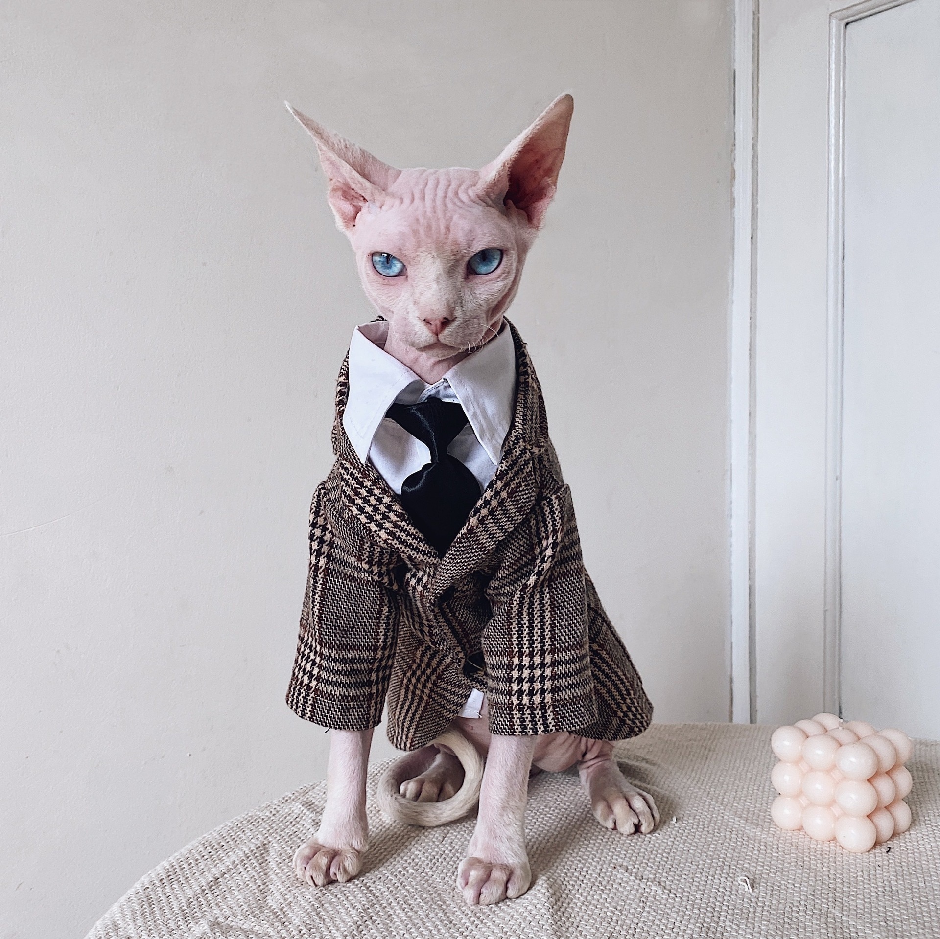 트렌디한 스핑크스 고양이 털이없는 고양이 커플 셔츠 정장 데본 영국 스타일 정장 새 옷 가을, 겨울