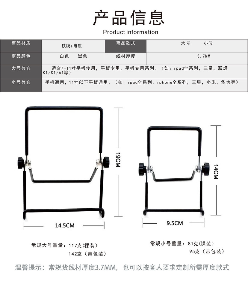 iPad, 휴대폰 및 태블릿에 적합한 데스크탑 삼각형 금속 스탠드 접이식 회전 철선 휴대용 게으른 스탠드