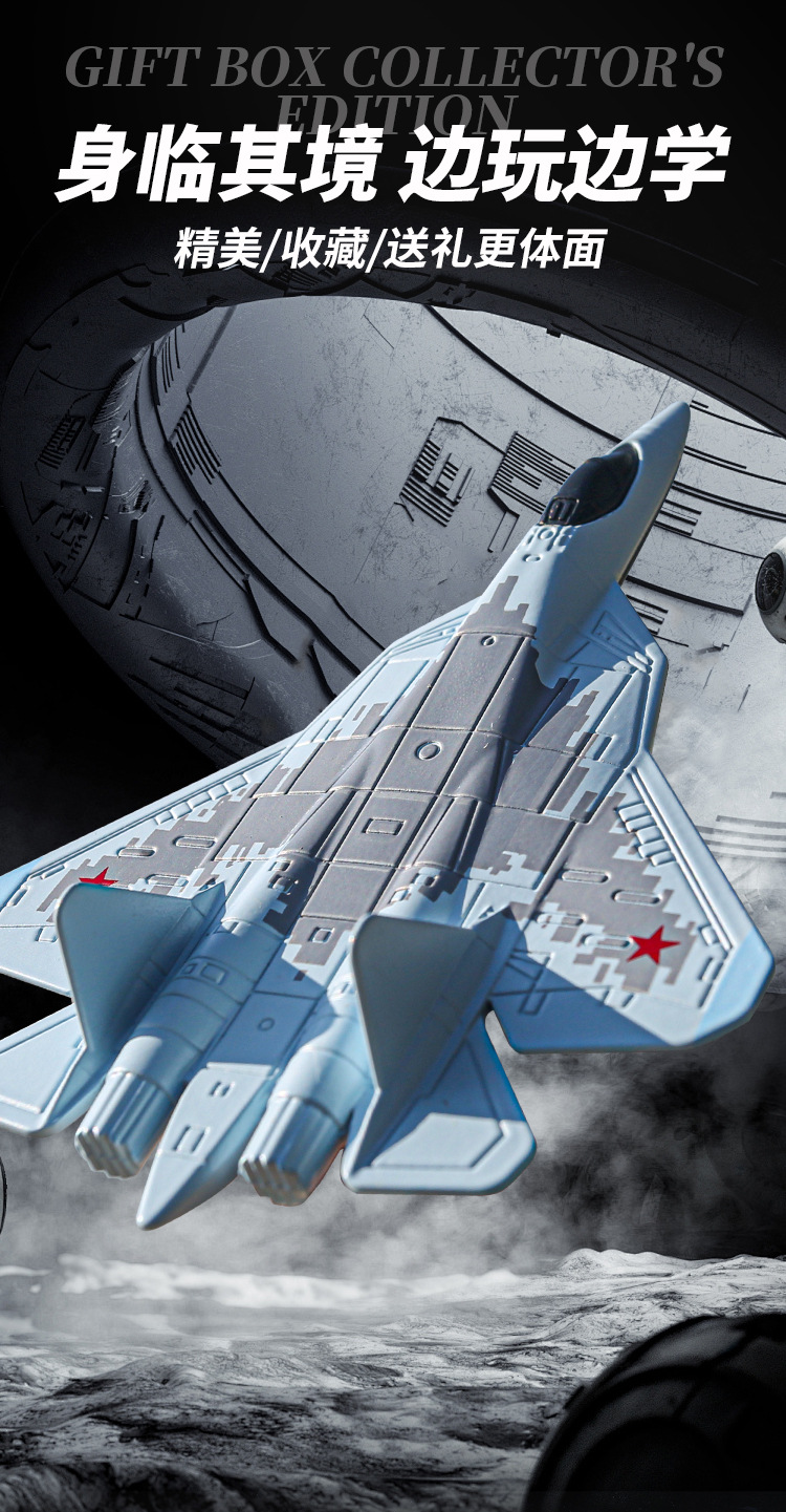 Su 57 항공기 모델 어린이 등 힘 시뮬레이션 합금 su57 전투기 금속 장난감 J-20 중-러시아 전투기 남성스토어 가기
