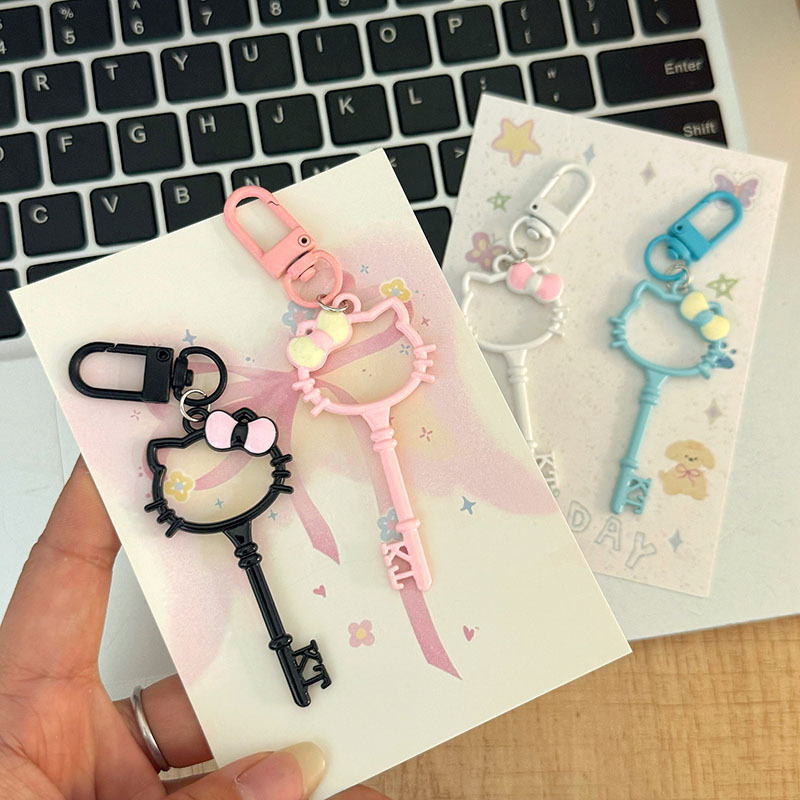 만화 합금 KT 고양이 마카롱 컬러 키 체인 펜던트 창조적 인 중공 디자인 귀여운 고양이 미 가방 펜던트
