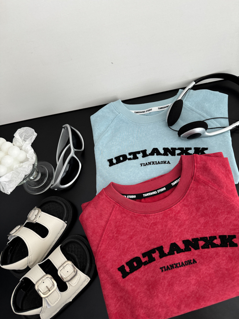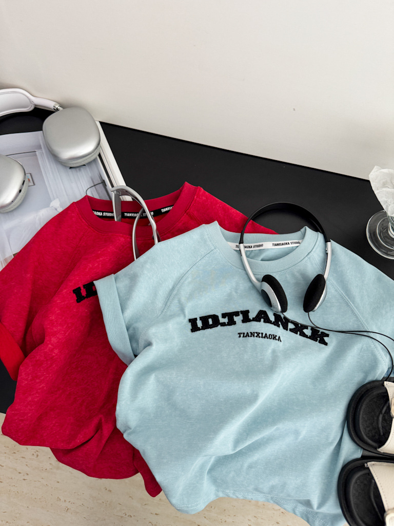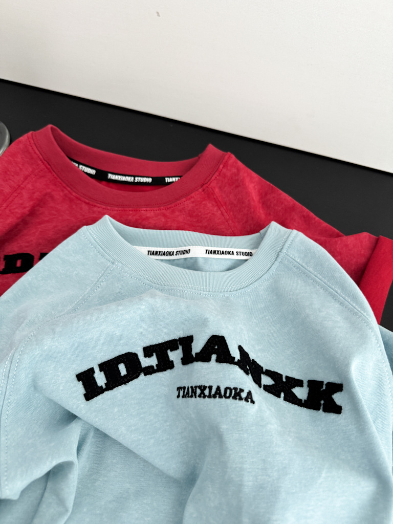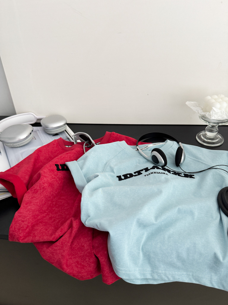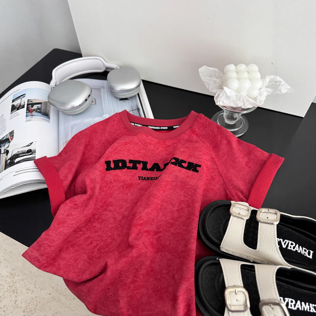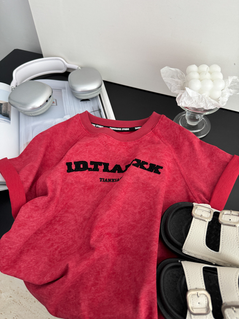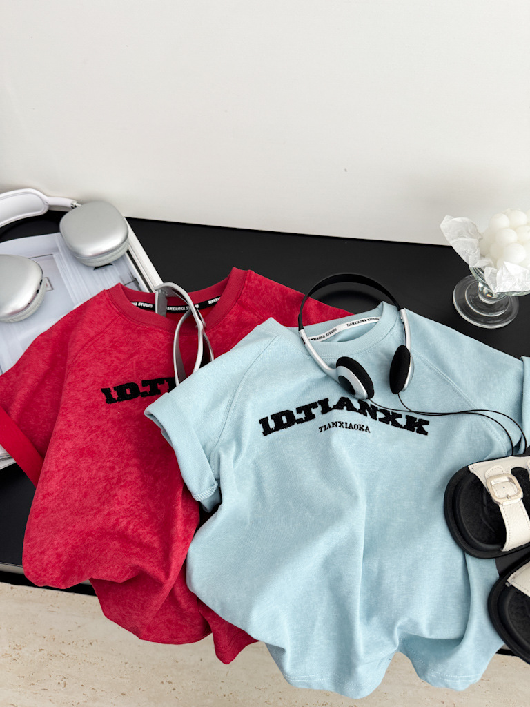 어린이 여름 티셔츠 2025 새로운 소년 자수 고난 눈송이 반팔 티셔츠 레트로 느슨한 소년 잘 생긴 성격스토어 가기