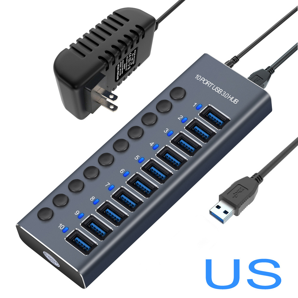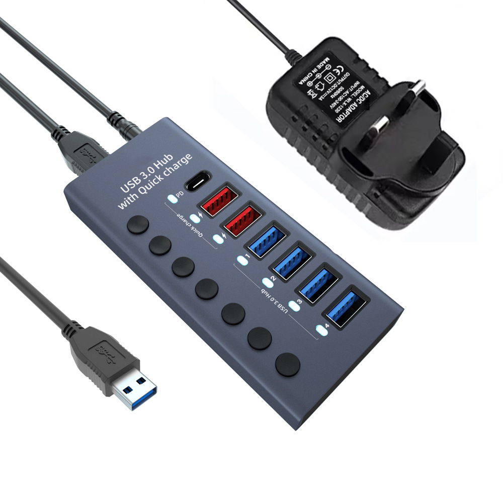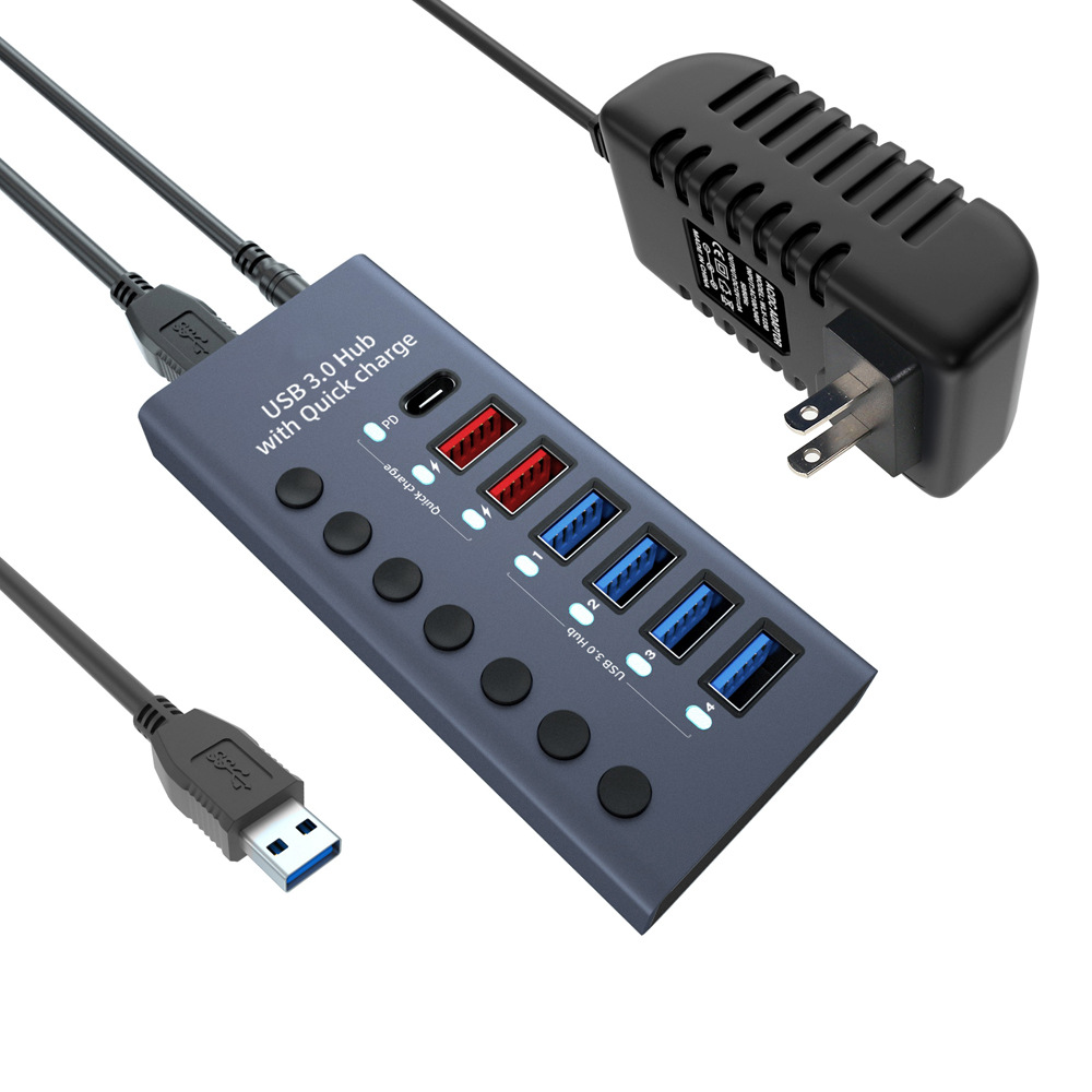 PD QC 멀티 인터페이스를 갖춘 공장 스팟 알루미늄 합금 독립 스위치 USB3.0 분배기 허브