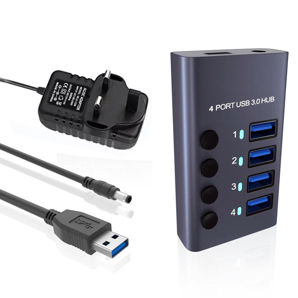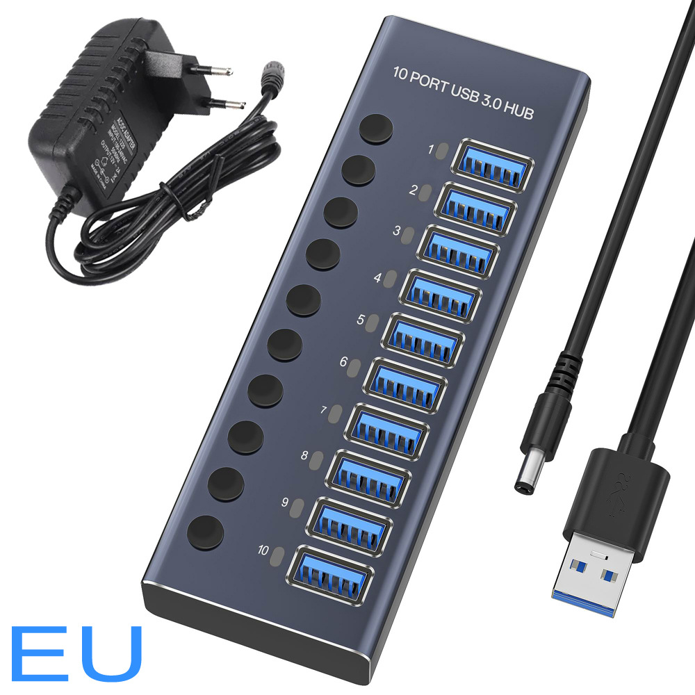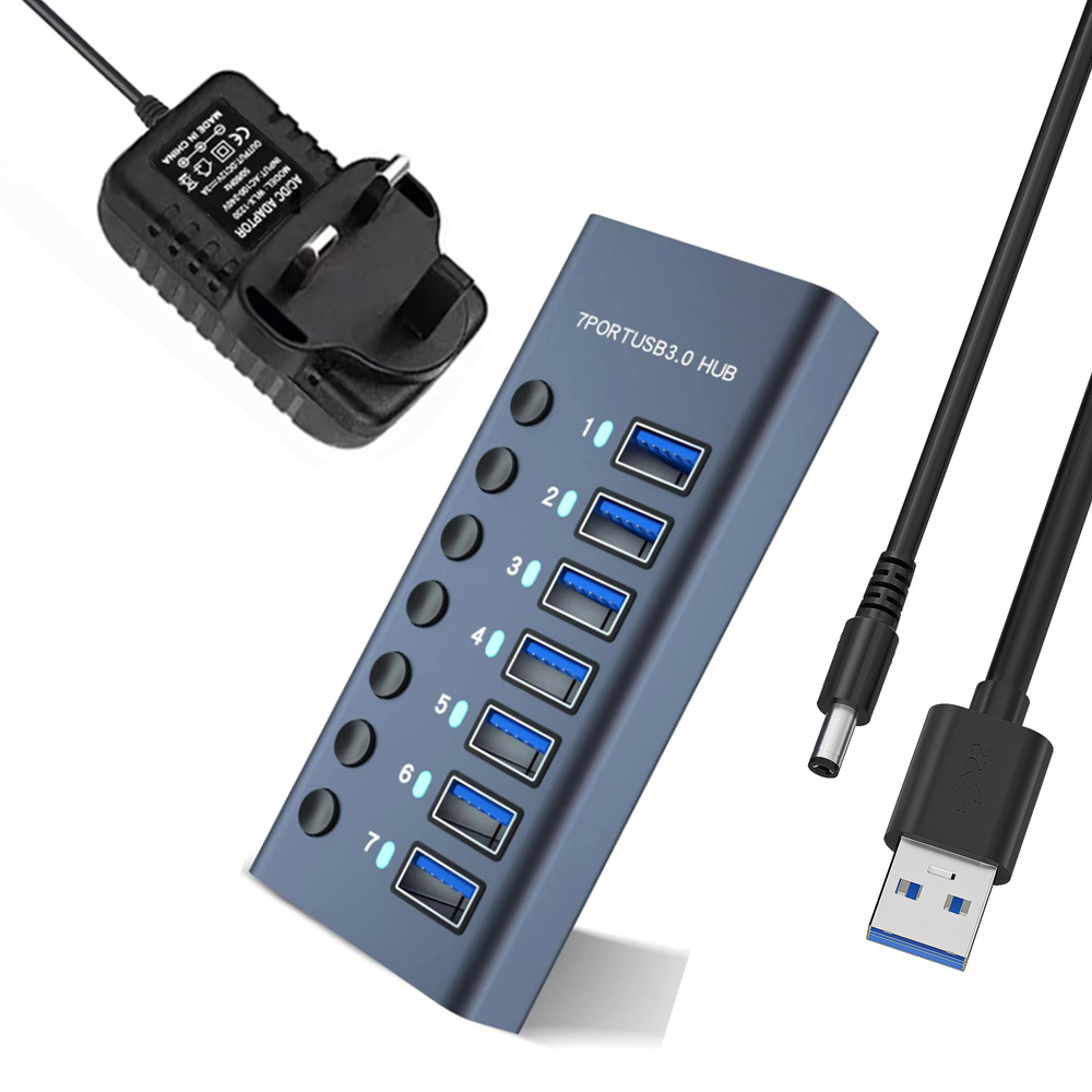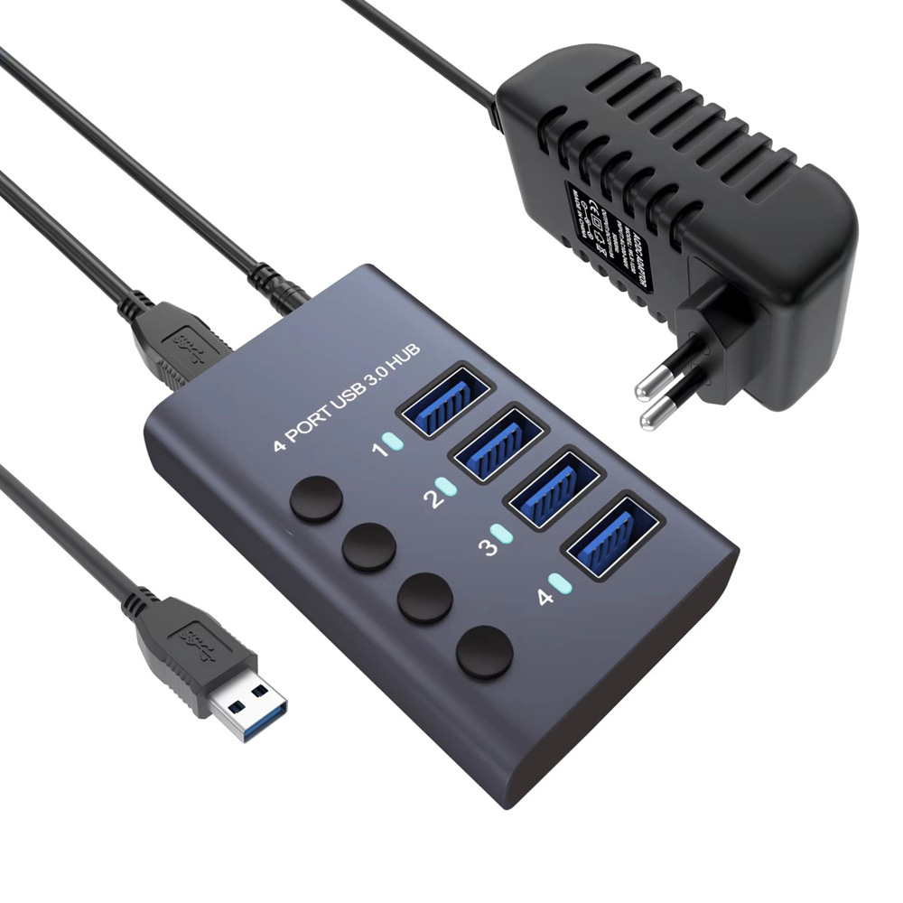 PD QC 멀티 인터페이스를 갖춘 공장 스팟 알루미늄 합금 독립 스위치 USB3.0 분배기 허브