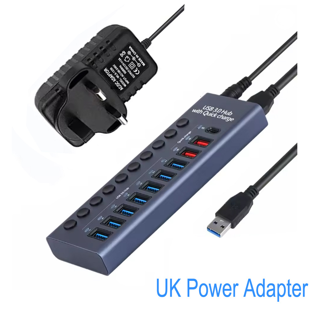 工厂现货铝合金独立开关USB3.0分线器HUB集线器带PD QC多接口
