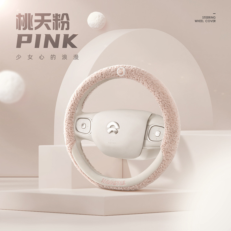 새로운 자동차 핸들 커버 겨울 테디 벨벳 귀여운 만화 따뜻한 범용 미끄럼 방지 자동차 인테리어 핸들 커버 Dropshipping스토어 가기