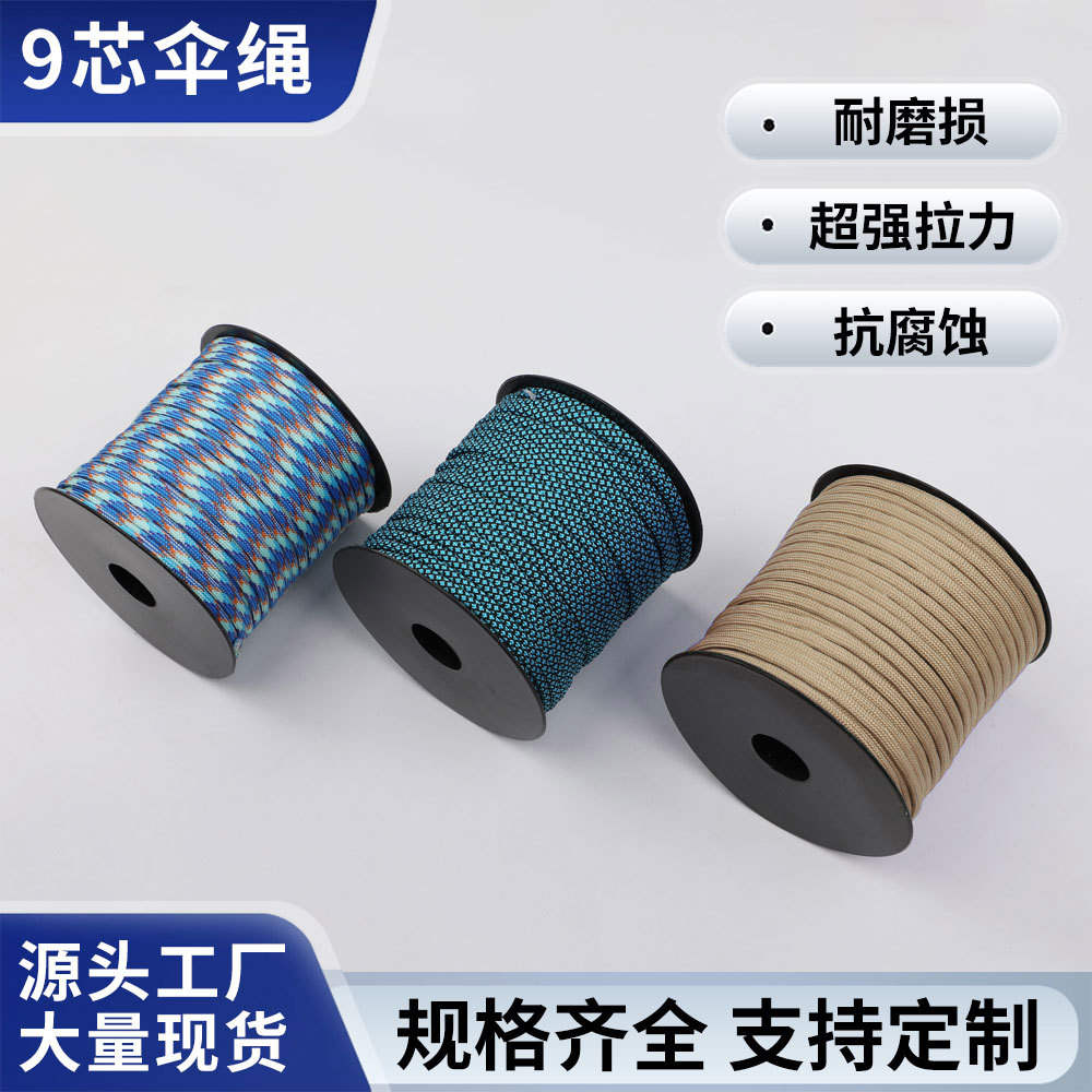 50m 축 장착 9 코어 4mm Paracord 야외 캠핑 비상 생존 로프 텐트 캐노피 당김 로프 방풍 로프
