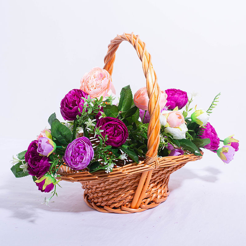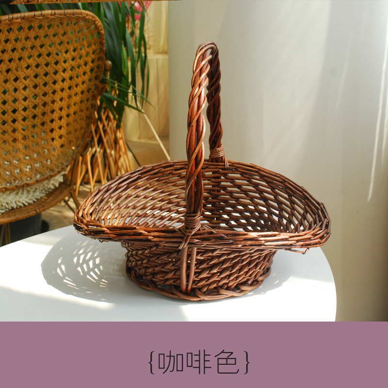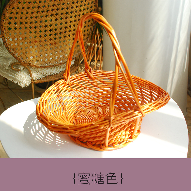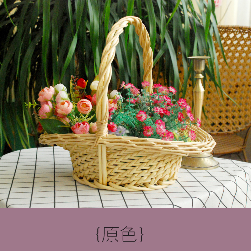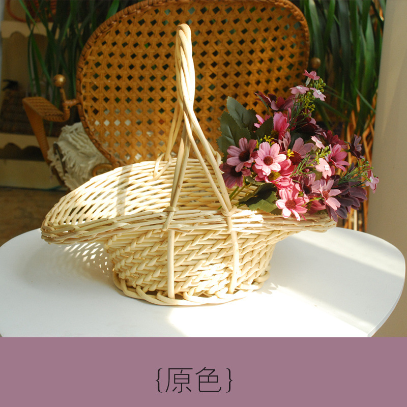 꽃 파란색 짠 바구니 등나무 과일 바구니 춤 사진 소품 휴대용 바구니 꽃 소녀 흩뿌리는 꽃 크고 작은 꽃 바구니 Amazon