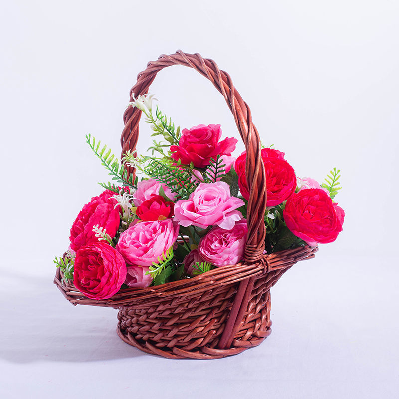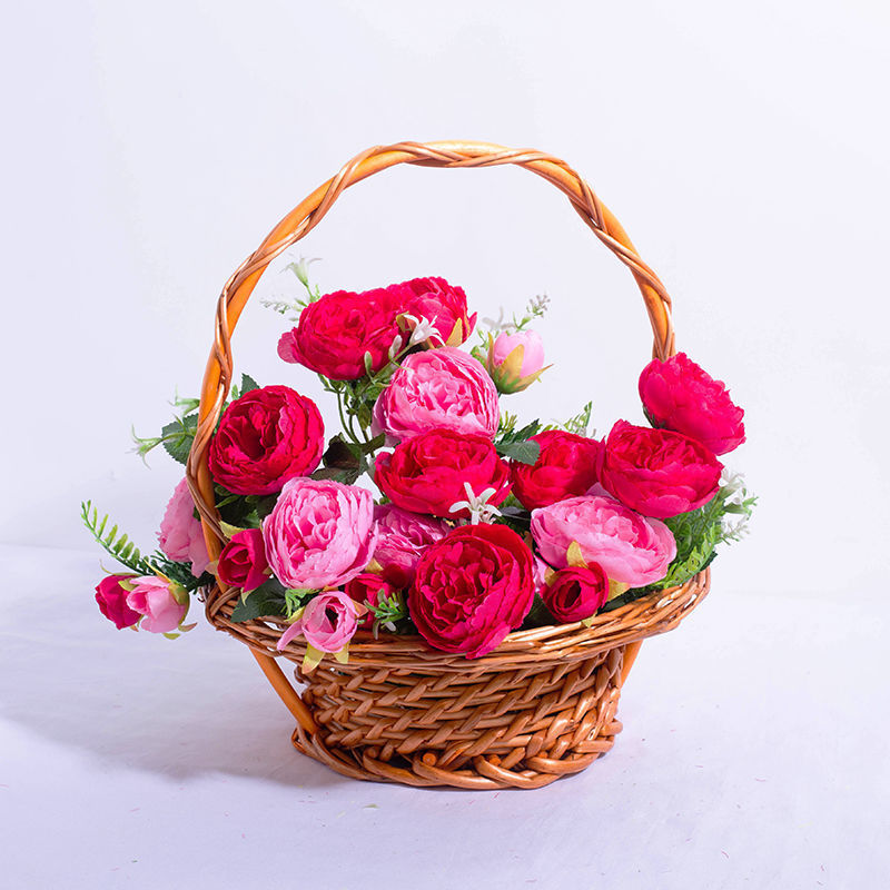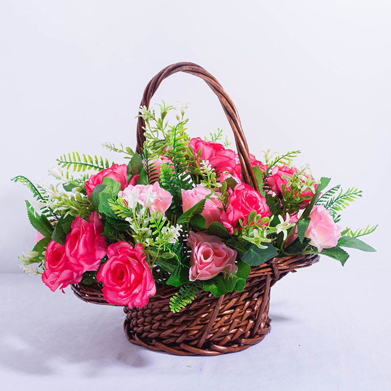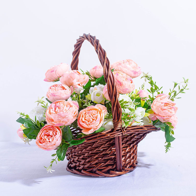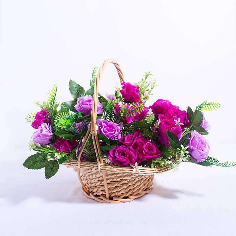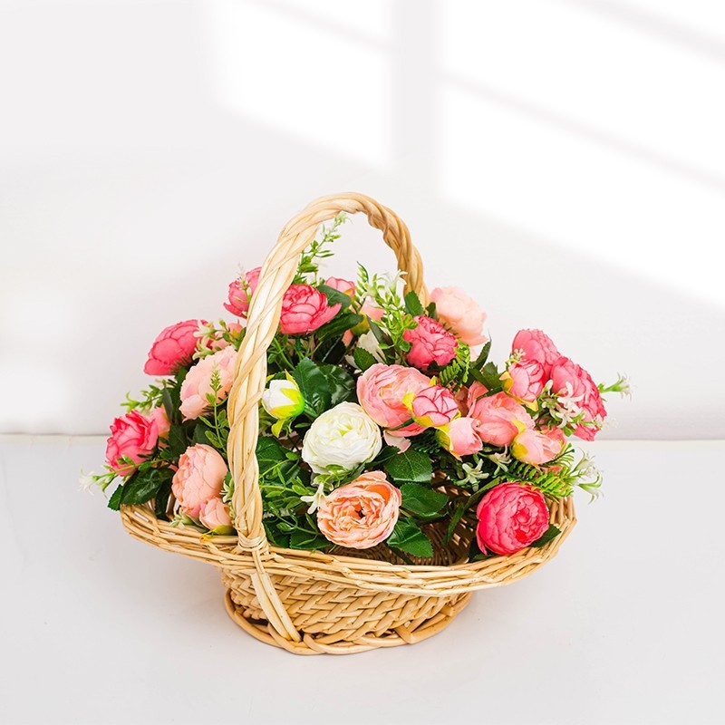 꽃 파란색 짠 바구니 등나무 과일 바구니 춤 사진 소품 휴대용 바구니 꽃 소녀 흩뿌리는 꽃 크고 작은 꽃 바구니 Amazon