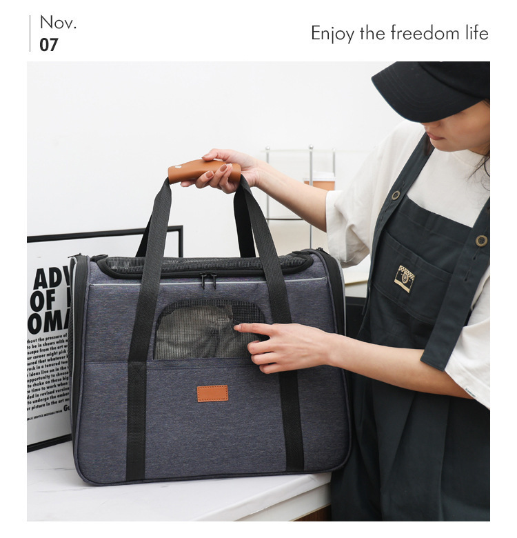 대용량 접이식 애완 동물 크로스 바디 핸드백, 휴대용 고양이와 개 2마리, 통기성 고양이 가방 도매스토어 가기