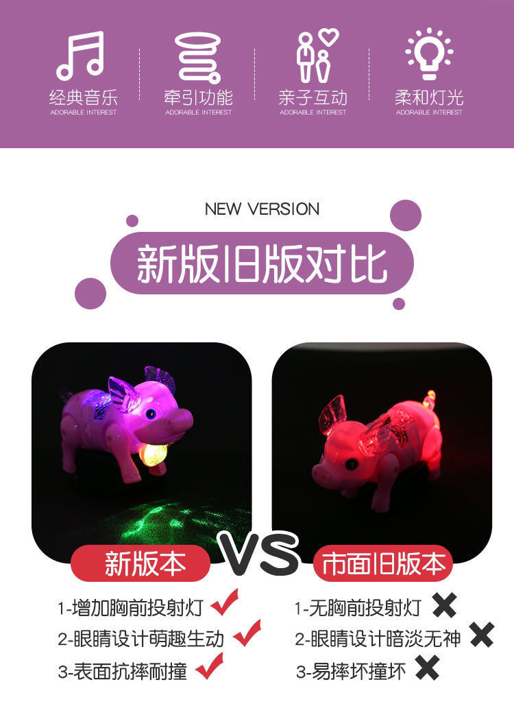 노래하고 걷는 작은 돼지 장난감, Douyin과 동일한 전기 인터넷 연예인 돼지 야시장 스톨 빛나는 장난감