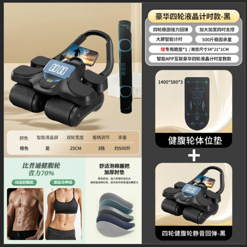 • [딥블랙] 휴대폰 인터넷 타이밍/고정수 + 무릎 패드 + 스웨트 피트니스 - [가정용 자동 리바운드 4륜 4팔꿈치 지지대] 스마트 LCD 디스플레이