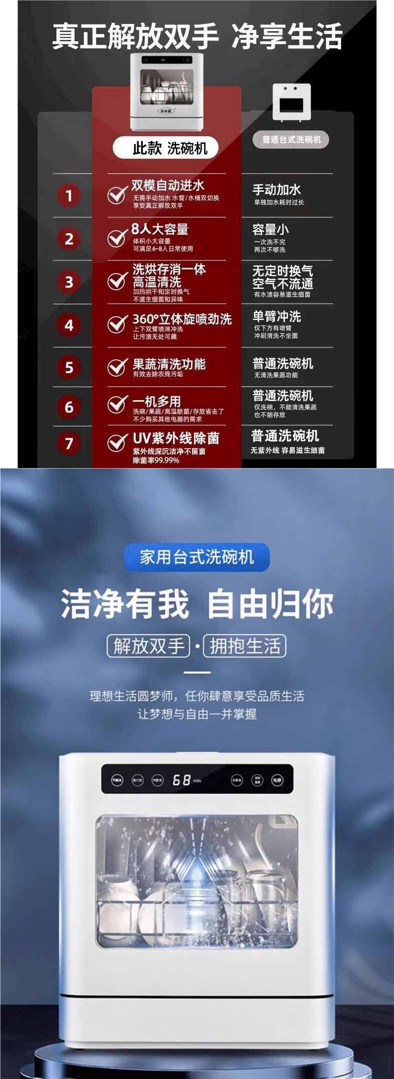 • [설치 불필요] 8인용 이중 급수구 + 고온 UV 이중 스프레이