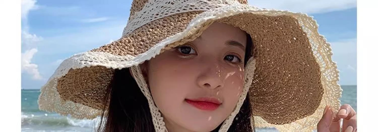 레이스 밀짚 모자 여성 여름 해변 태양 모자 한국어 버전 태양 보호 큰 챙 태양 보호 휴가 해변 풍경 모자 도매스토어 가기