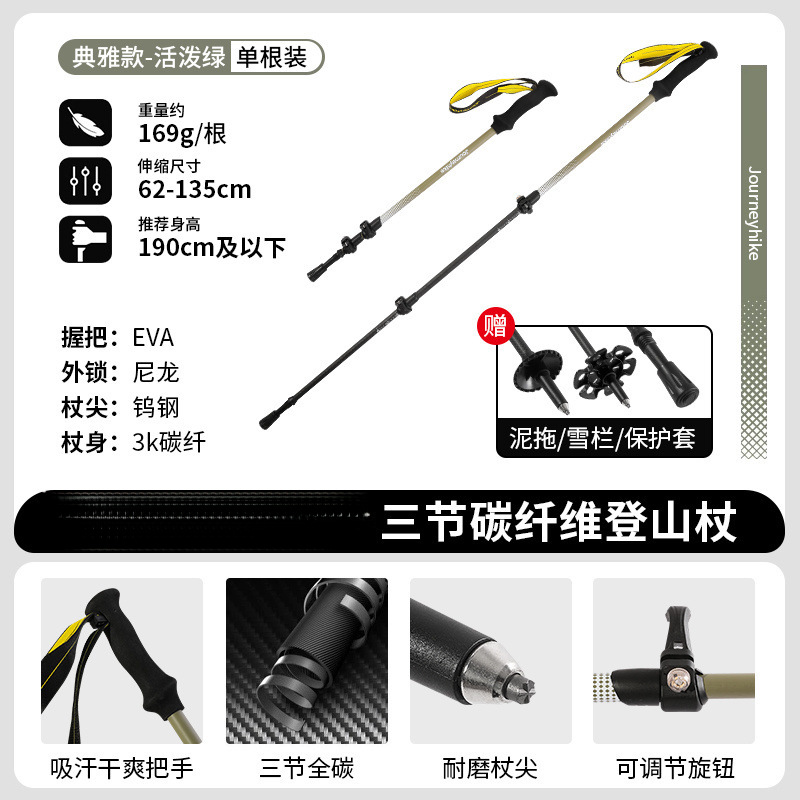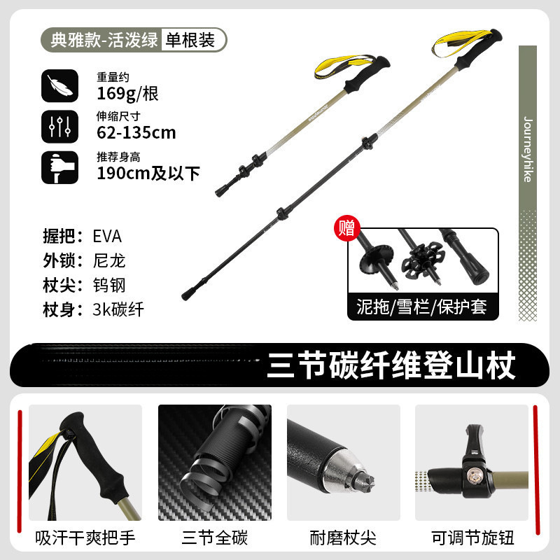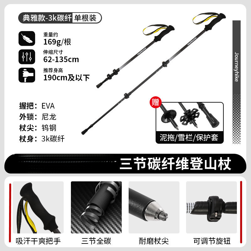 휴대용 트레킹 폴 텔레스코픽 휴대용 초경량 하드 카본 3K 탄소 섬유 캠핑 하이킹 지팡이 야외 등산 장비