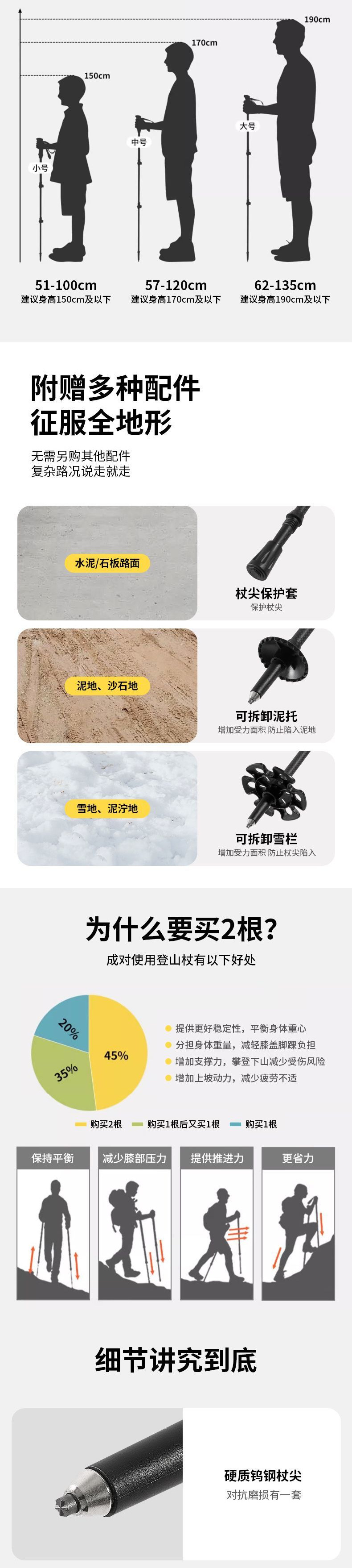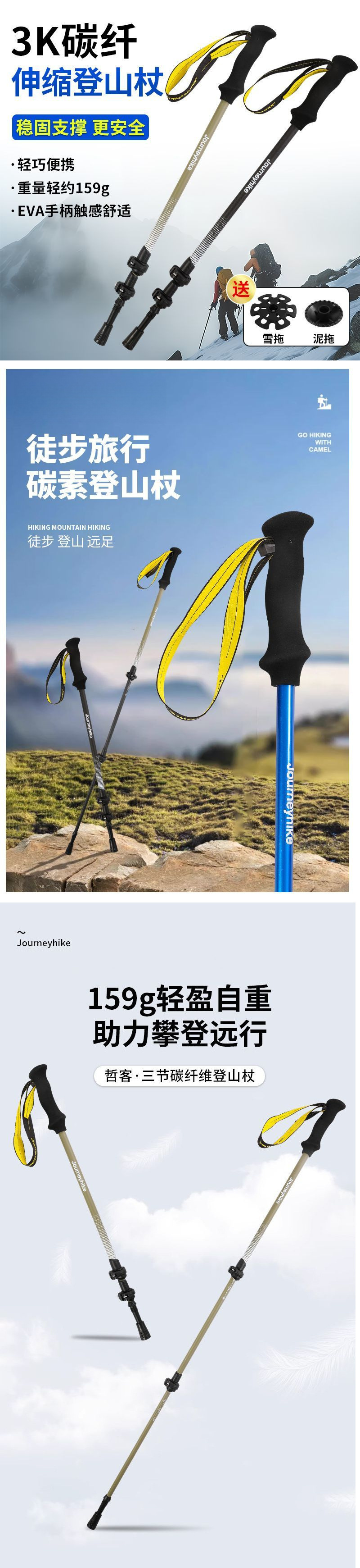 휴대용 트레킹 폴 텔레스코픽 휴대용 초경량 하드 카본 3K 탄소 섬유 캠핑 하이킹 지팡이 야외 등산 장비스토어 가기