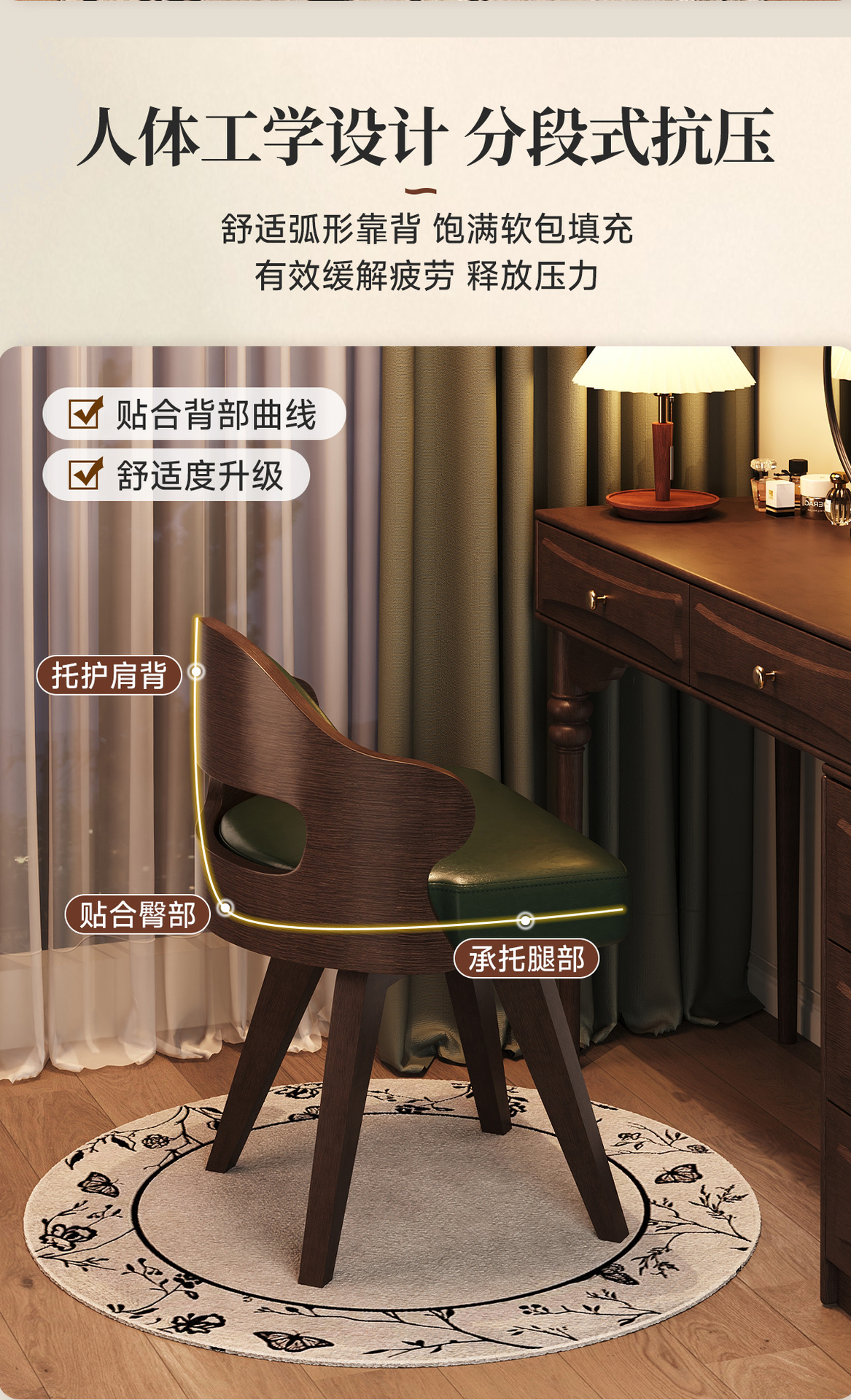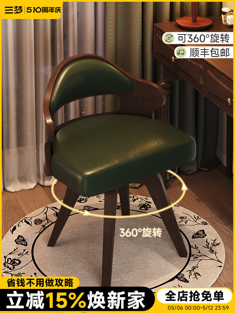 단단한 나무 가정용 회전 컴퓨터 의자 학생 책상 의자 간단한 작은 컴팩트 쓰기 의자 등받이 메이크업 의자 의자