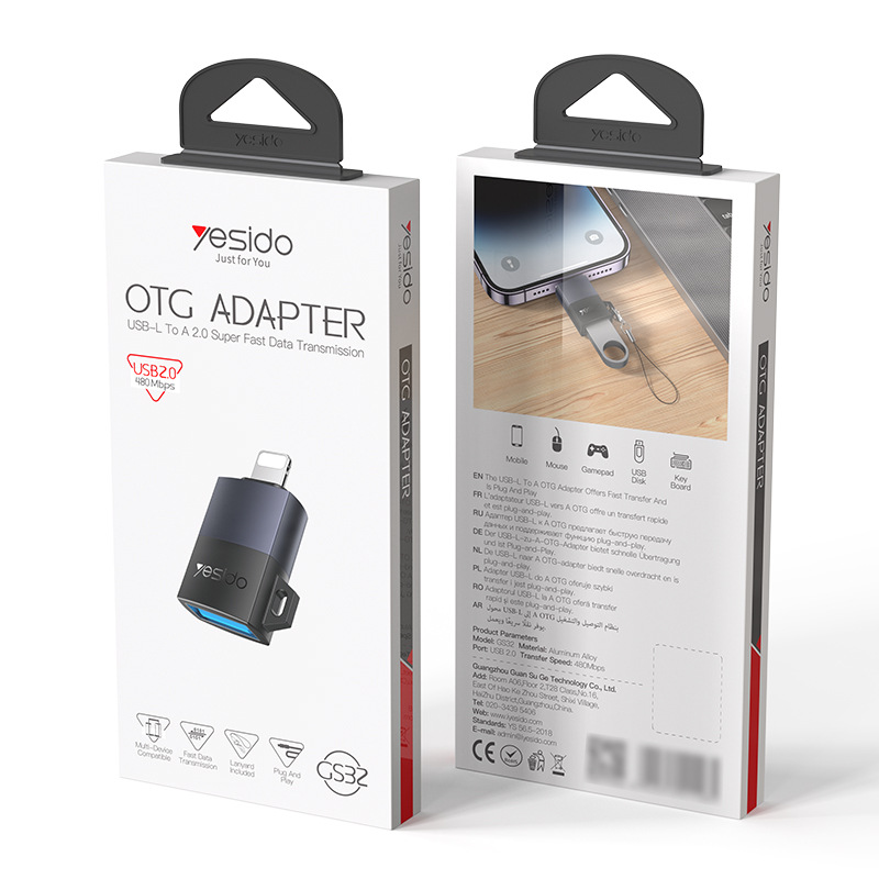 Yesido 휴대 전화 어댑터 알루미늄 합금 USB-Apple 어댑터 Apple 14 휴대 전화 OTG 어댑터에 적합스토어 가기