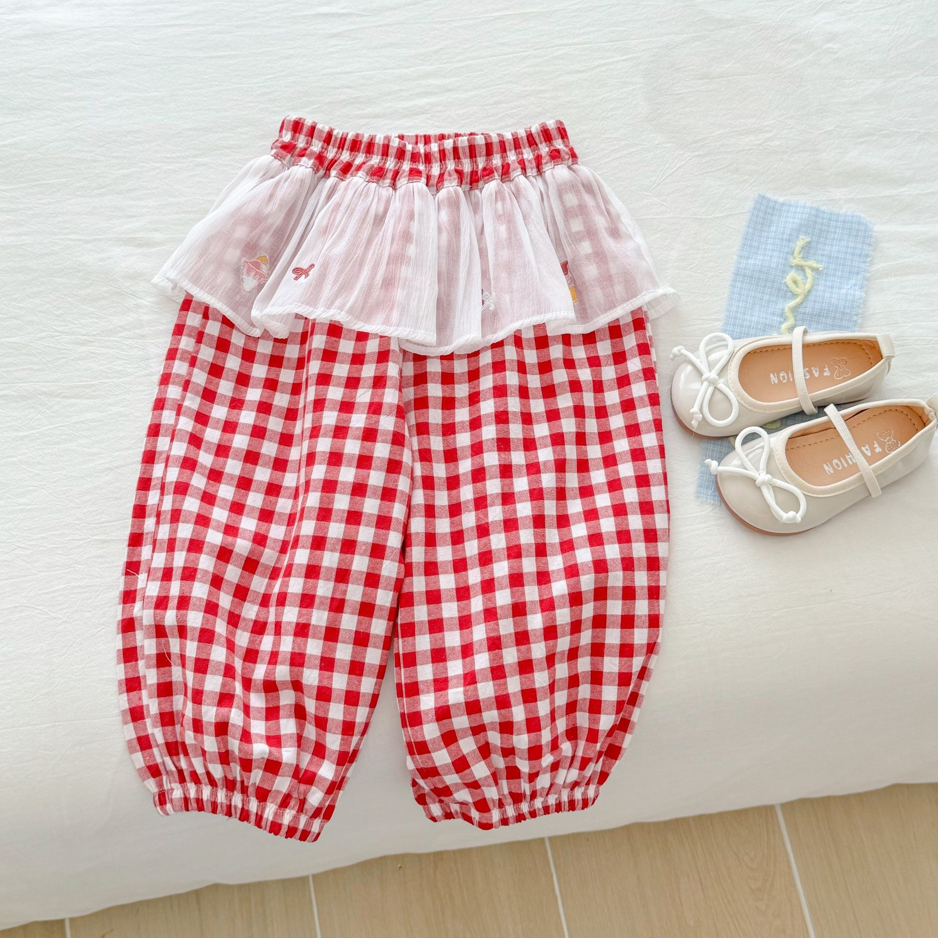 어린이 모기 방지 바지 여름 바지 순면 클래스 서양 스타일 한국 스타일 소녀 유행 얇은 캐주얼 바지 레이스 바지