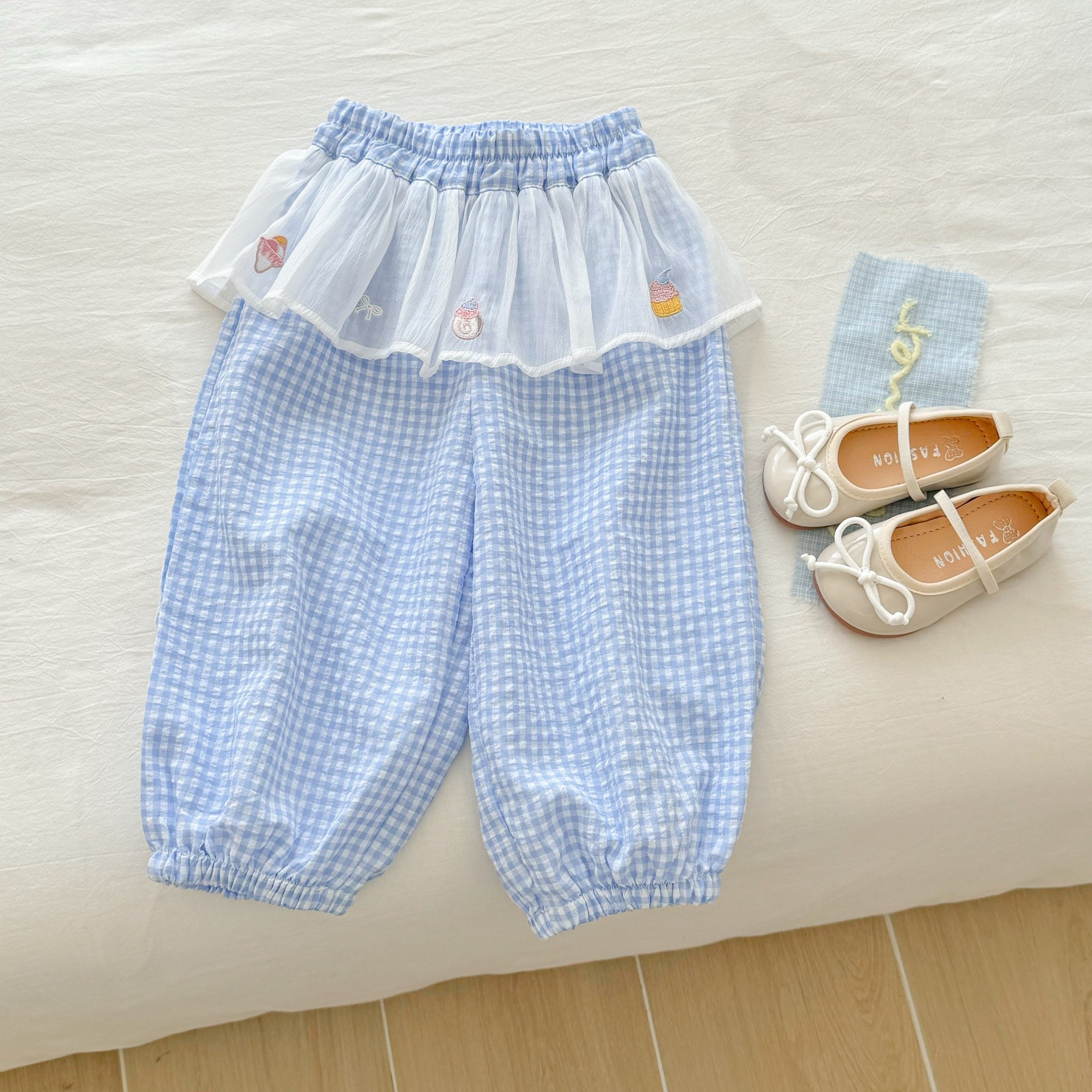어린이 모기 방지 바지 여름 바지 순면 클래스 서양 스타일 한국 스타일 소녀 유행 얇은 캐주얼 바지 레이스 바지스토어 가기
