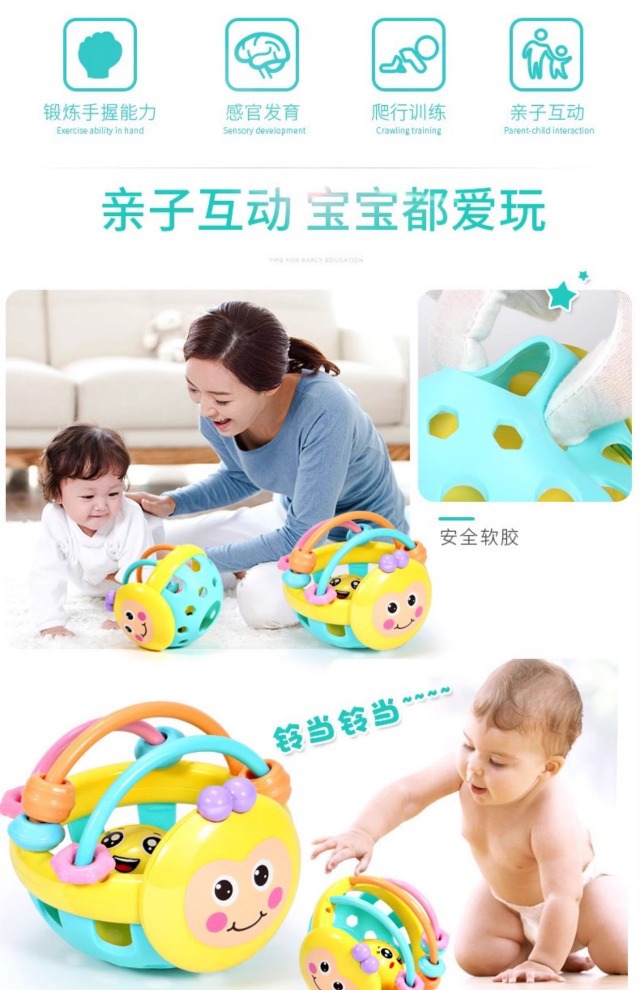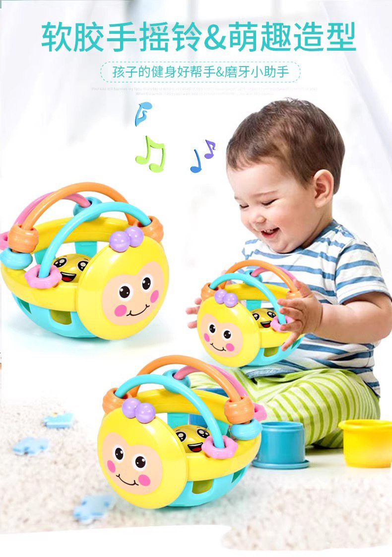 아기의 손으로 긁는 공 장난감 0-1 년 6 개월 아기 조기 교육 퍼즐 꿀벌 부드러운 치아 젤 손 딸랑이 장난감 엄마와 아이스토어 가기
