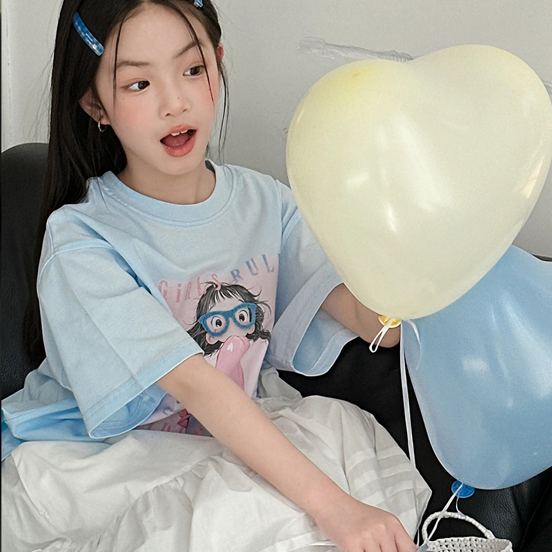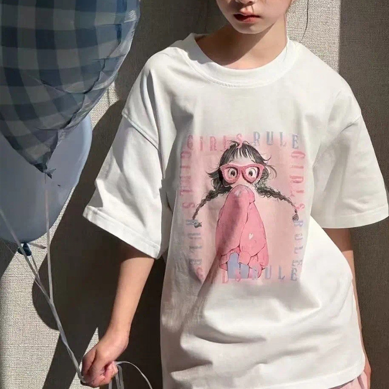 여자 반소매 티셔츠 여름 2025 새로운 스타일 아동복 어린 소녀의 느슨한 탑 어린이 여름 반소매 얇은