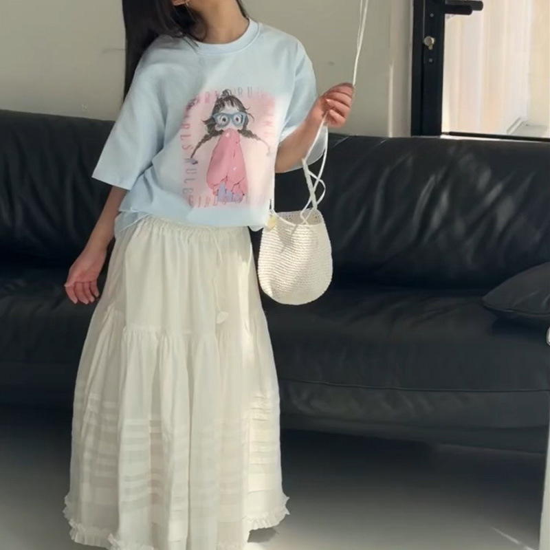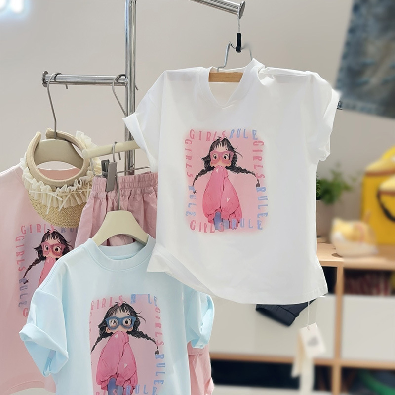 여자 반소매 티셔츠 여름 2025 새로운 스타일 아동복 어린 소녀의 느슨한 탑 어린이 여름 반소매 얇은스토어 가기