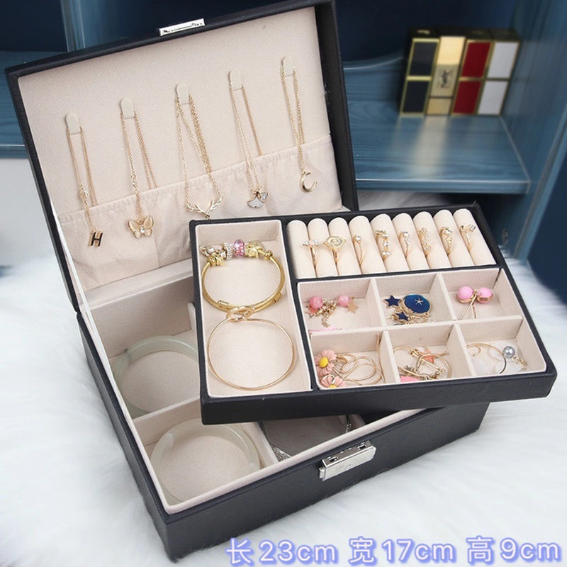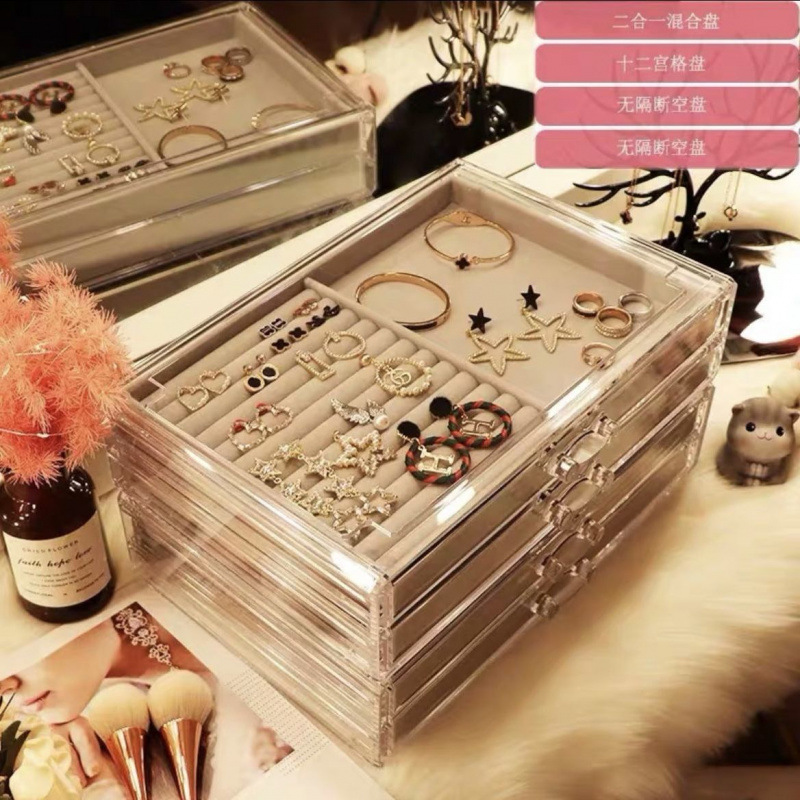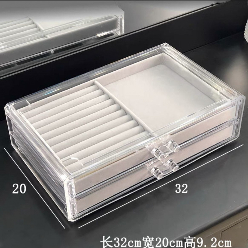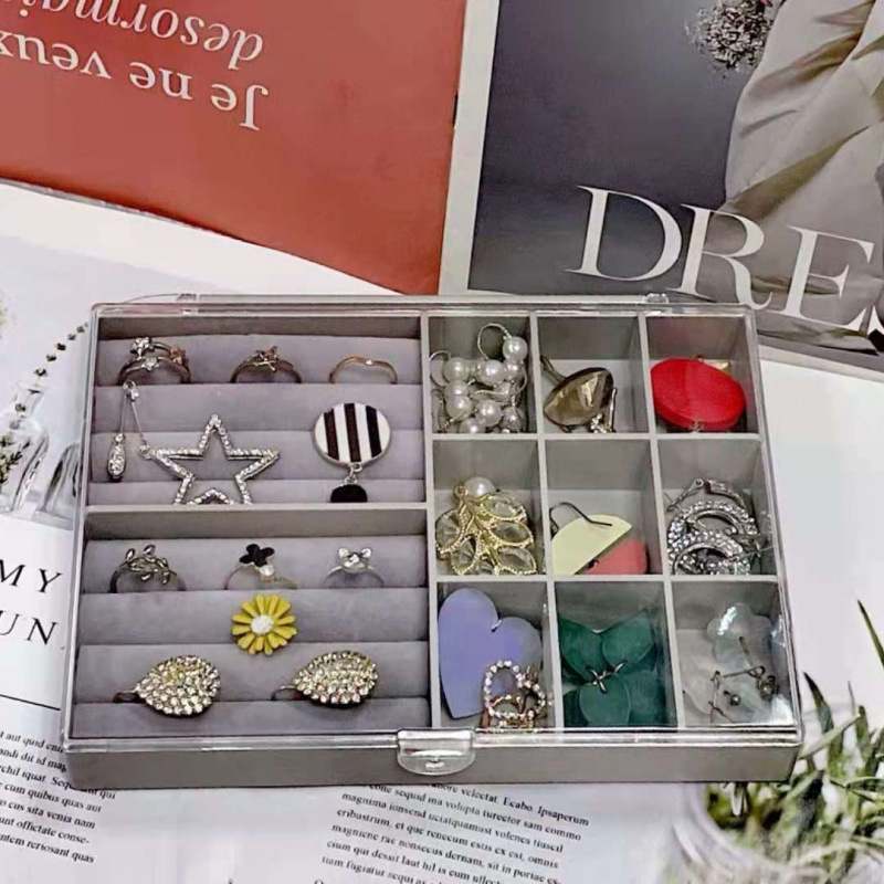 • 2개의 수납공간 + 9개의 수납공간이 있는 대형 투명 보석함(뚜껑 없음)