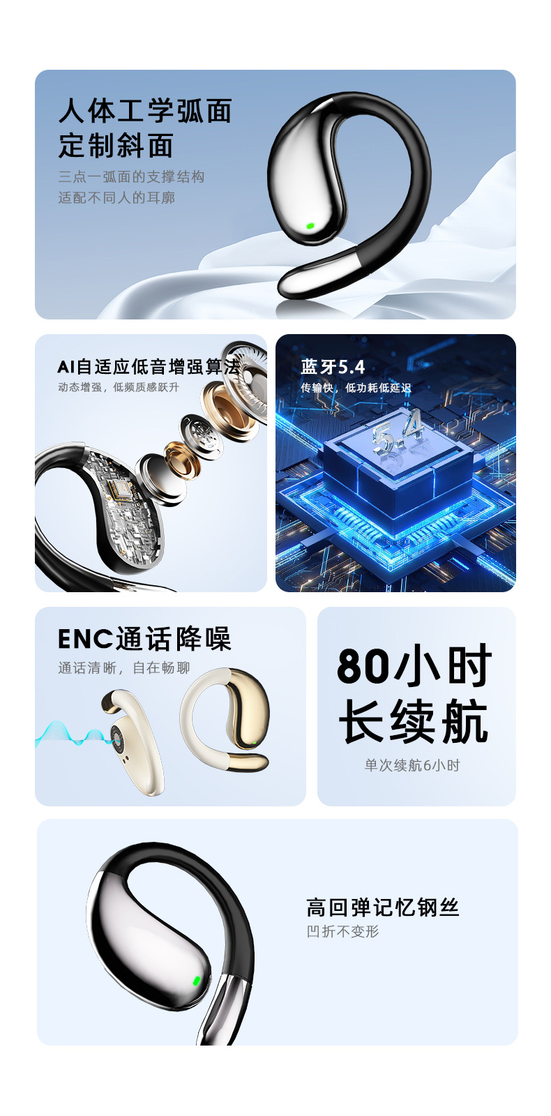 인기 있는 Bluetooth 5.4 헤드셋, 고품질 귀걸이형 비인이어 무선 스포츠 맞춤형 AI 지능형 번역 헤드셋스토어 가기
