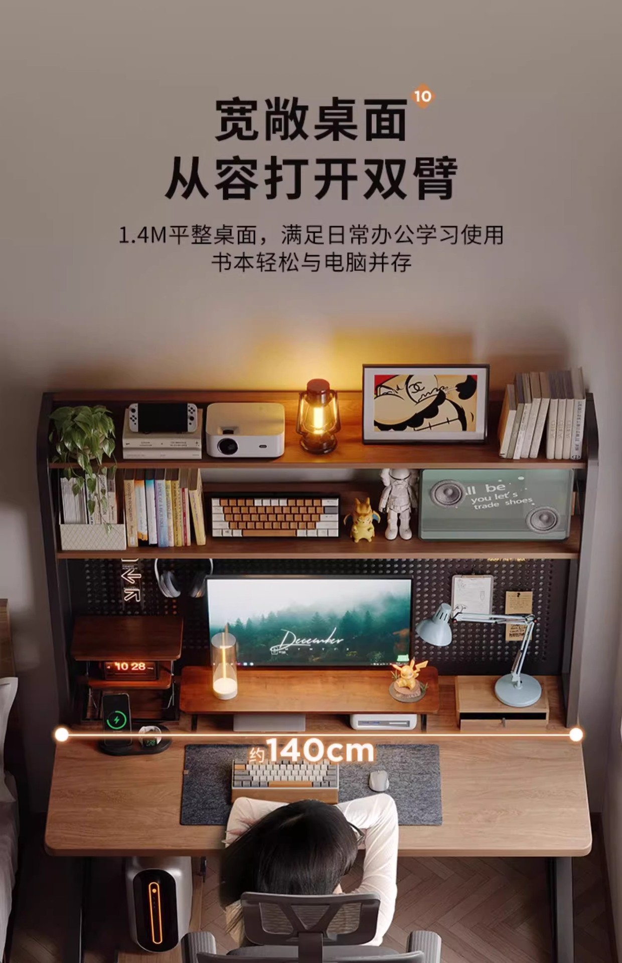 • [무료 슈프림 액세서리 패키지] 월넛 컬러 140cm+대형 플랫폼*2+소형 플랫폼*2+메쉬 바구니*1+사각 후크*12+자기 흡입