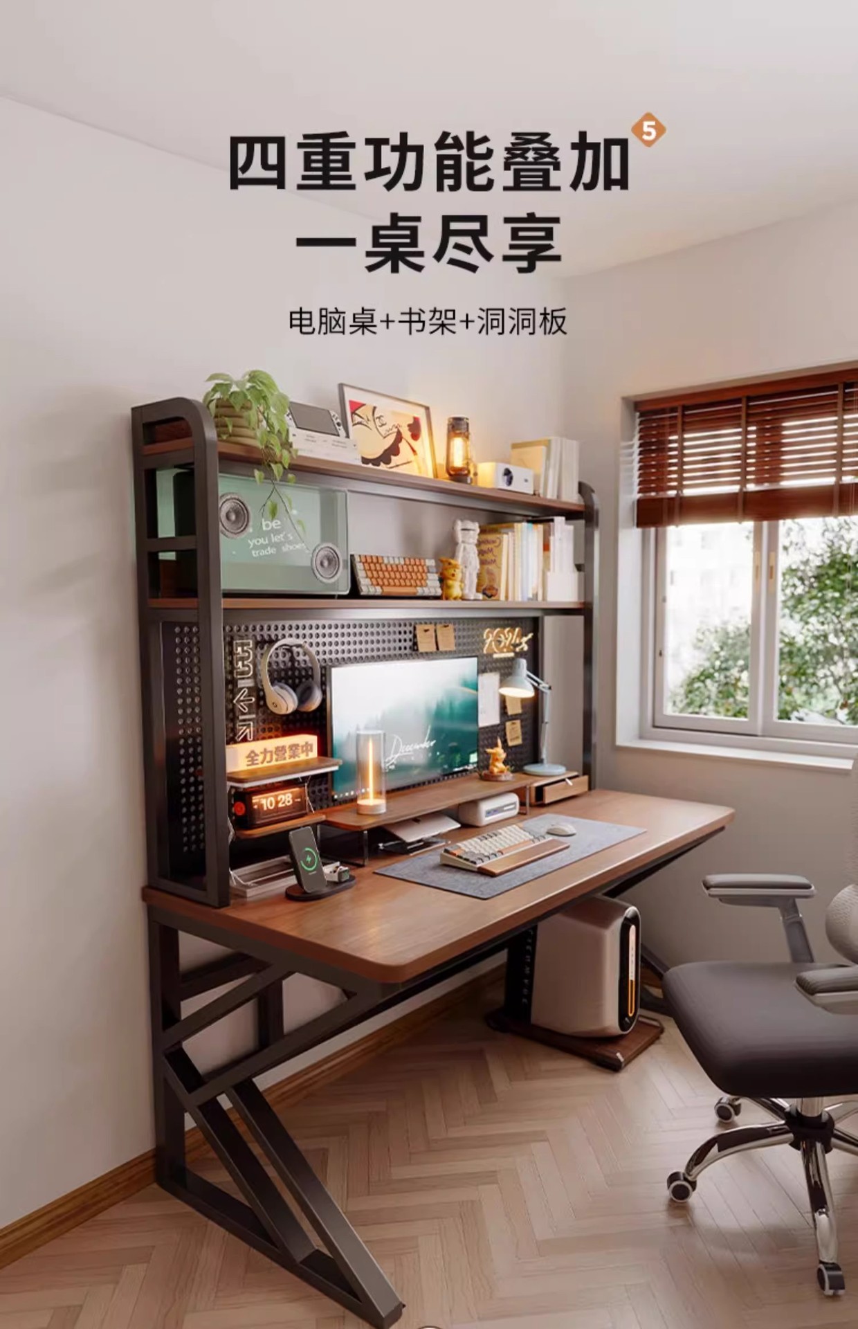 데스크탑 컴퓨터 책상, 침실 홈 책상, 책장, 일체형 테이블, 사무실 책상, 구멍판, e스포츠 테이블 및 의자 세트스토어 가기