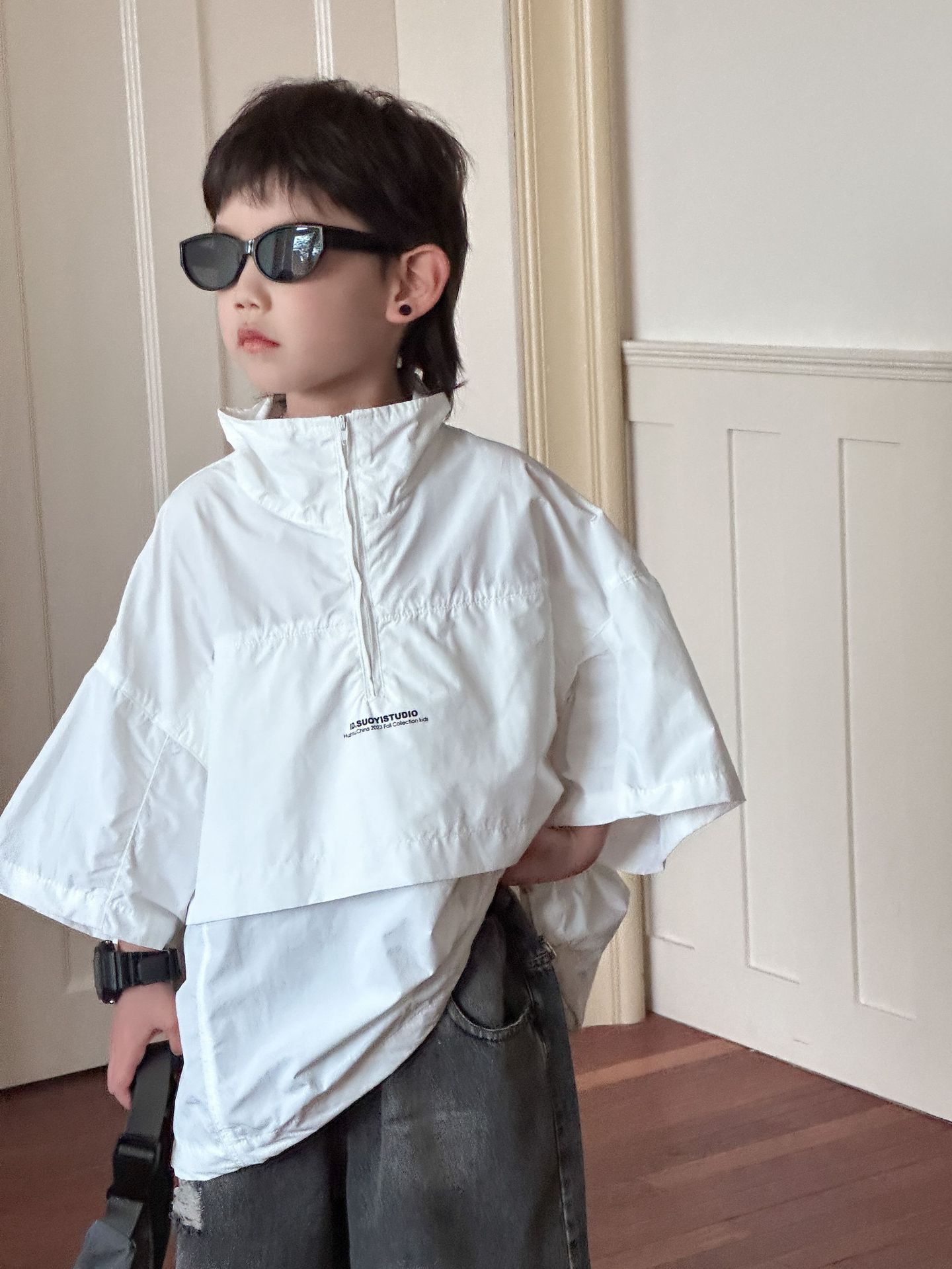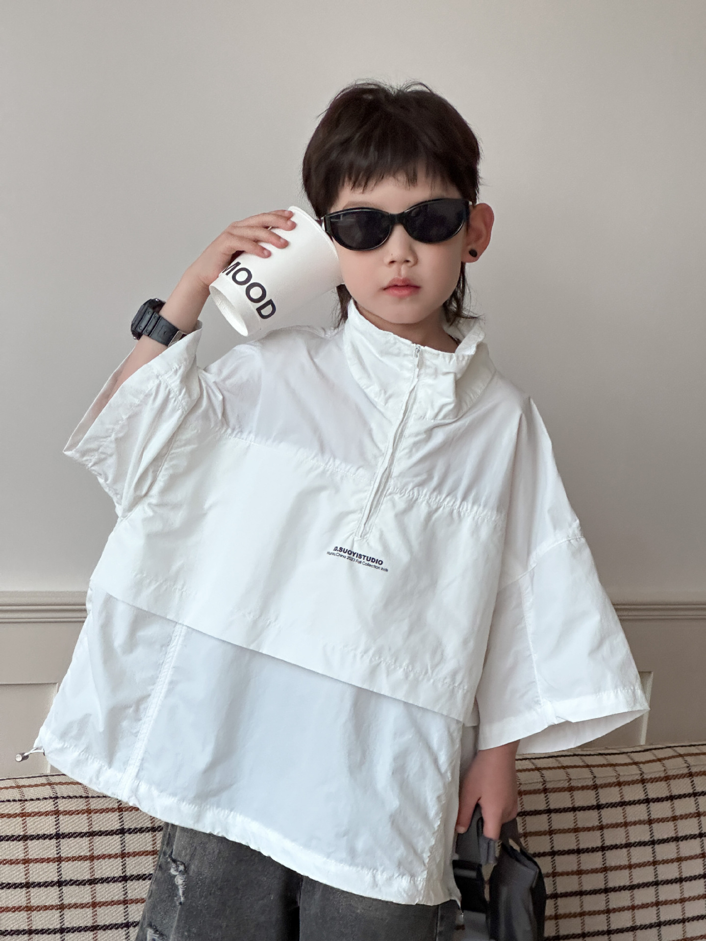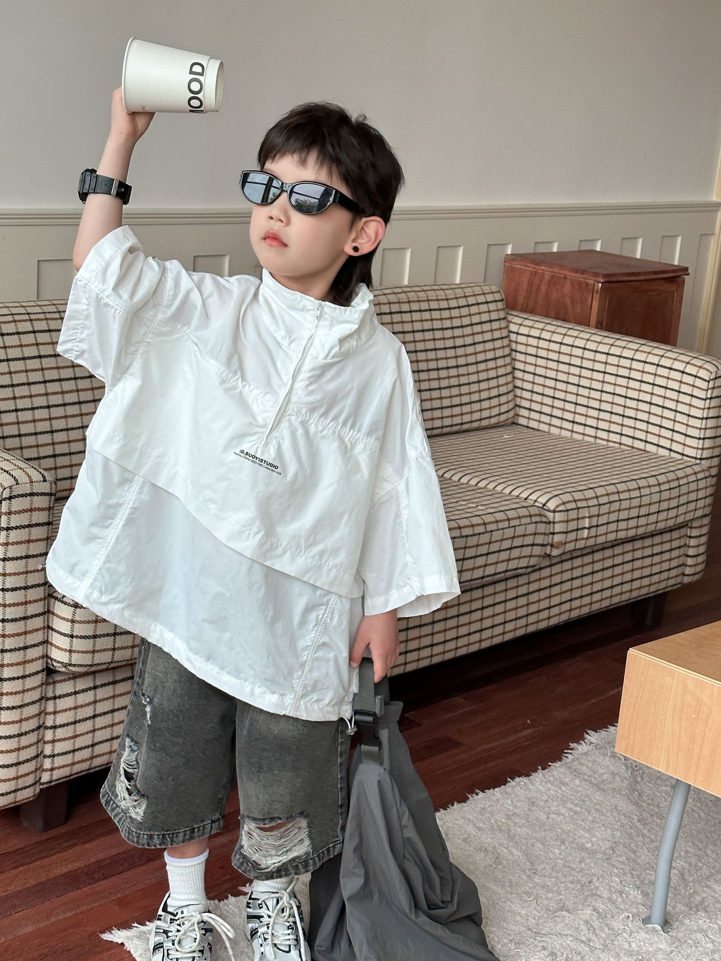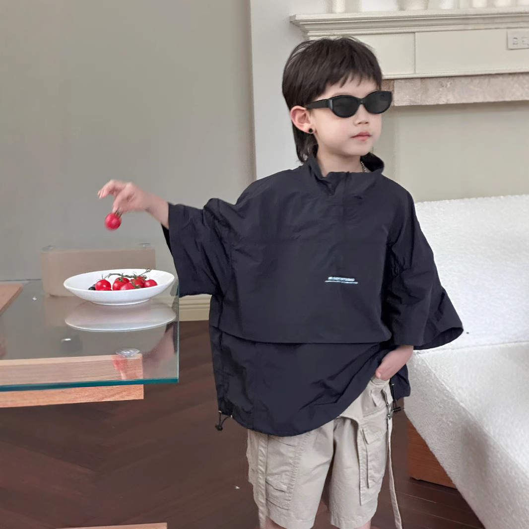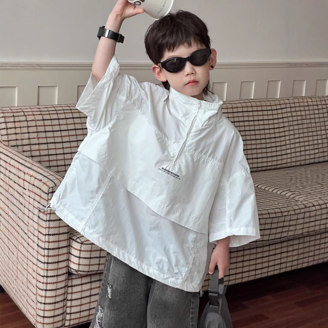 [클리어아웃 세일] 2025 여름 아동용 반팔 하프 지퍼 자외선 차단 탑 소년 소녀용 아웃도어 재킷